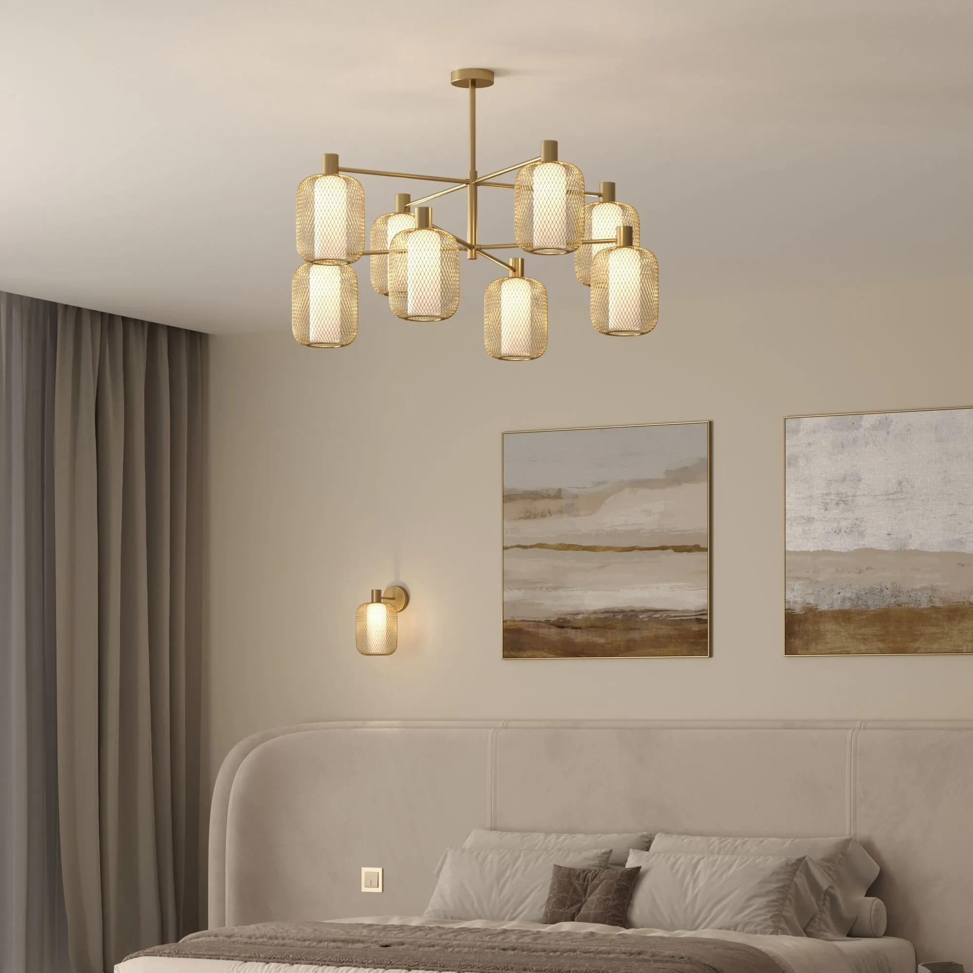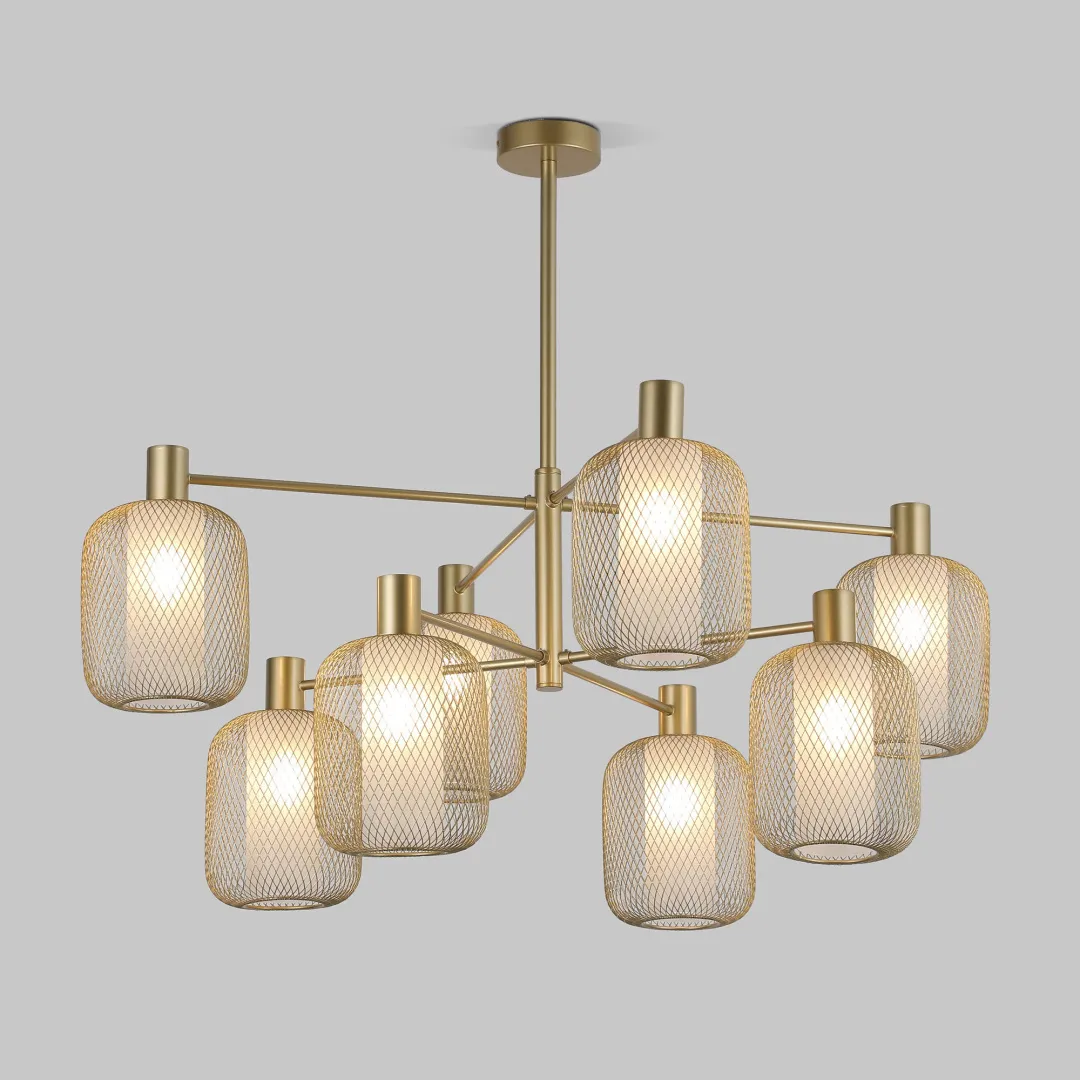 • Коллекция включает в себя потолочные люстры на 6 и 8 плафонов, а также настенный светильник.