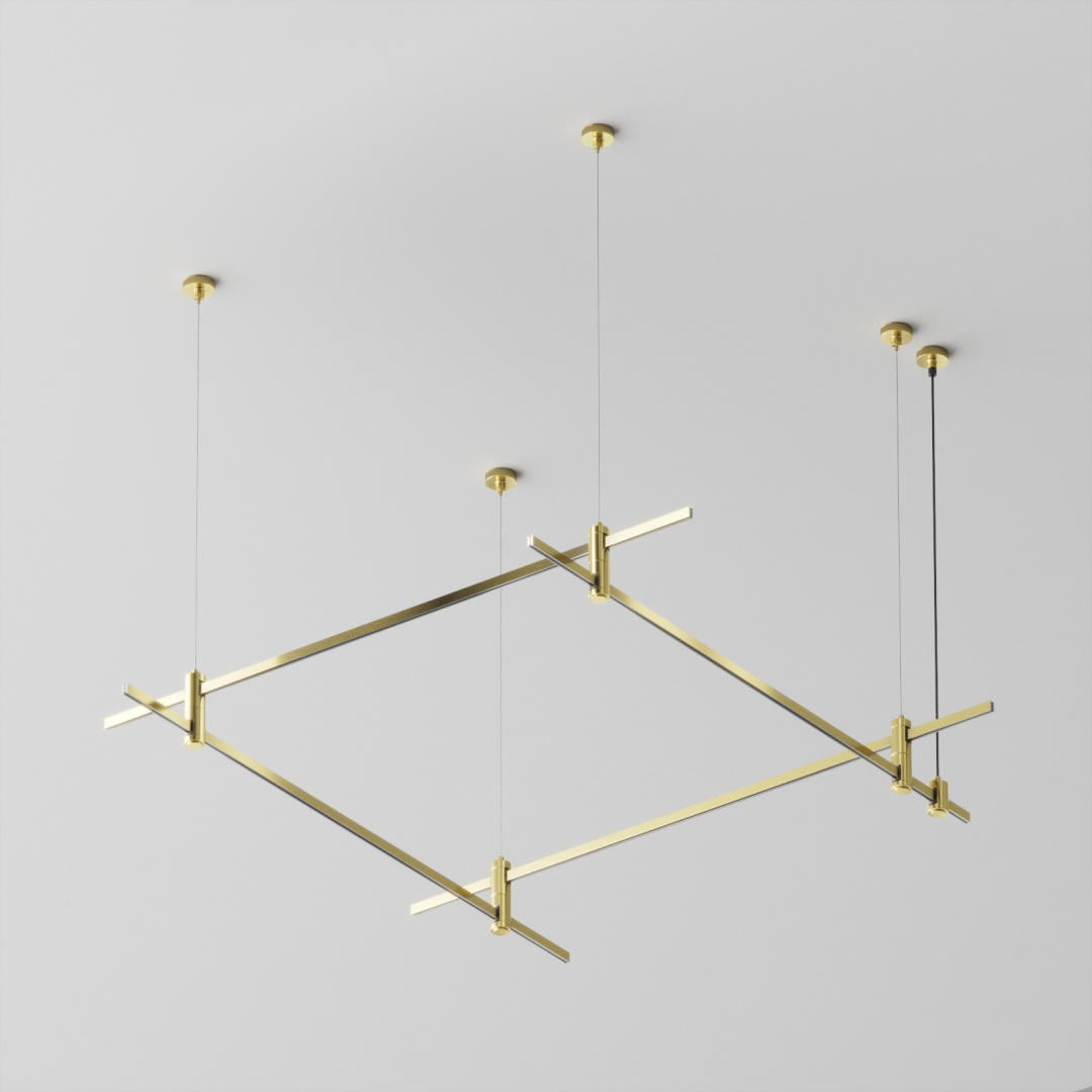 Готовая конструкция квадратная двухуровневая на тросовых подвесах Hang без светильников и блока питания, латунь Maytoni TFC-Flar-H04-BS