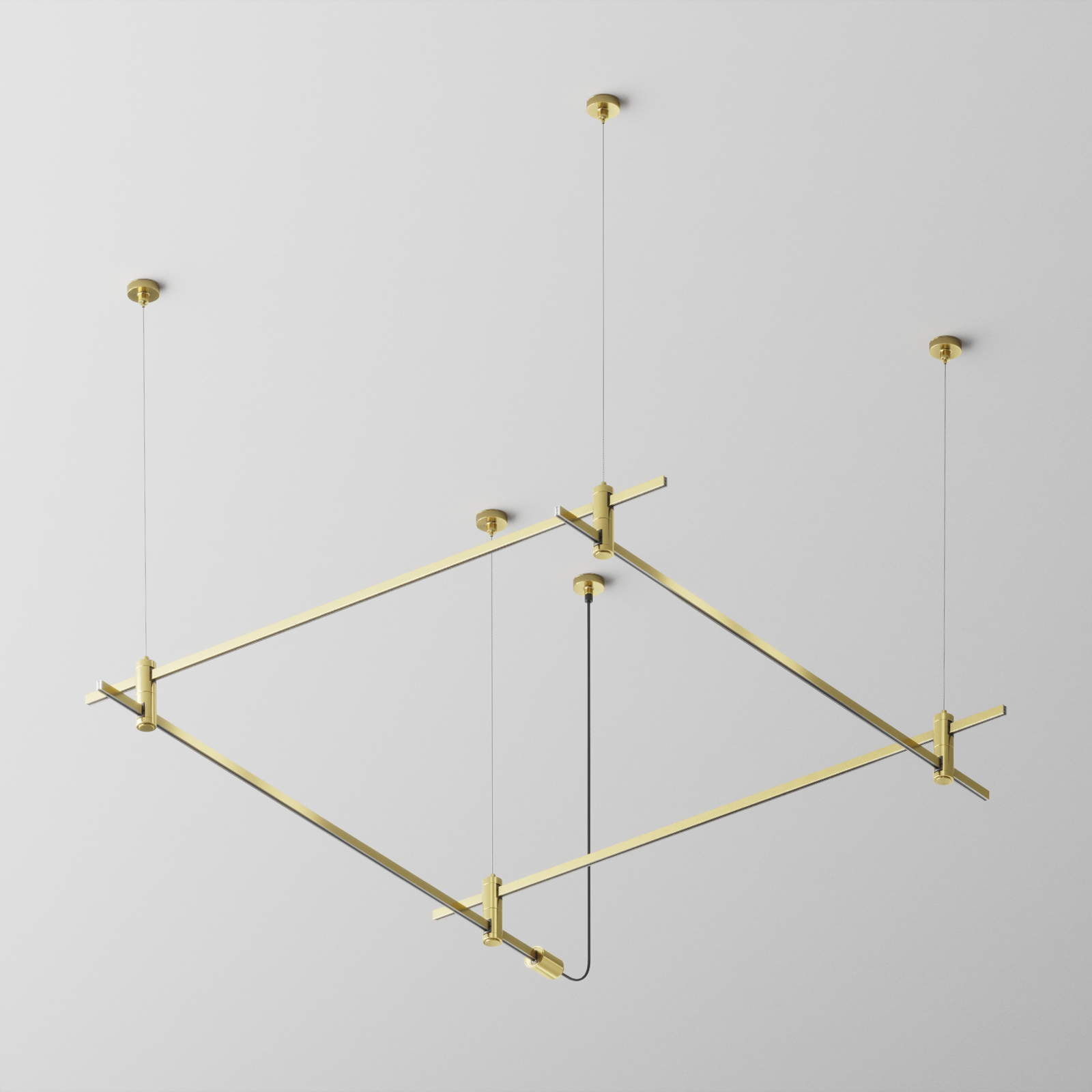 Готовая конструкция квадратная двухуровневая на тросовых подвесах Hang без светильников и блока питания, латунь Maytoni TFC-Flar-H08-BS
