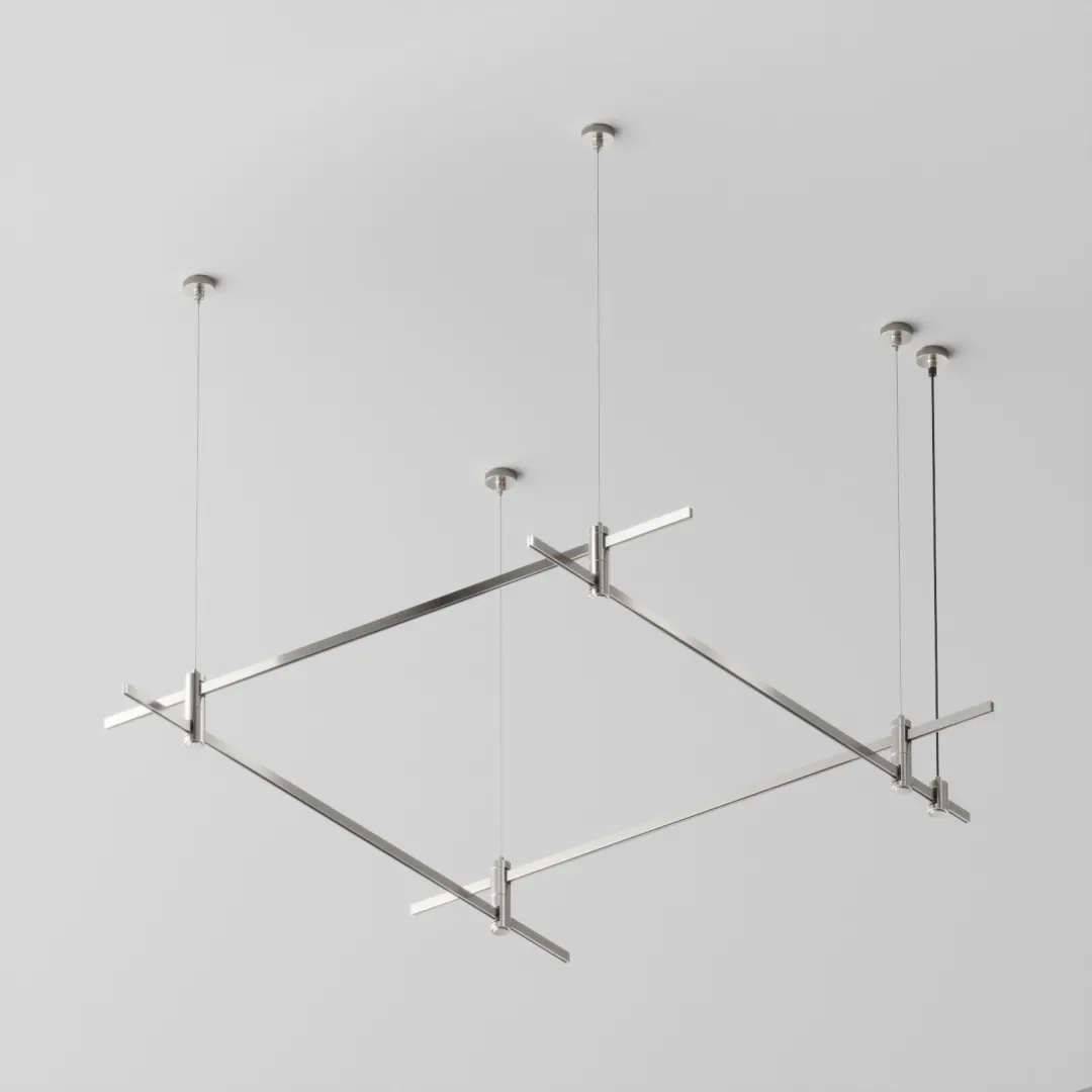 Готовая конструкция квадратная двухуровневая на тросовых подвесах Hang без светильников и блока питания, платина Maytoni TFC-Flar-H04-PT