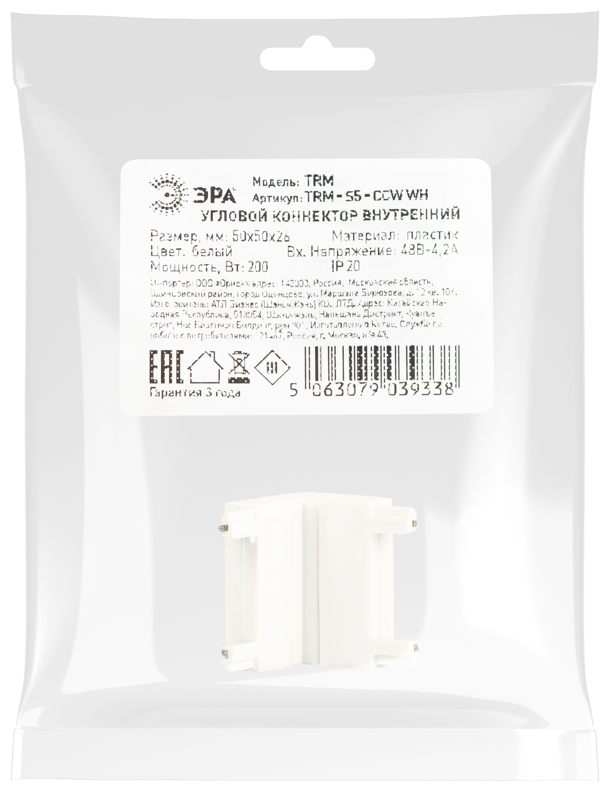 Угловой коннектор внутренний для ультратонкой низковольтной трековой системы. Вход. напряжение 48 вольт.