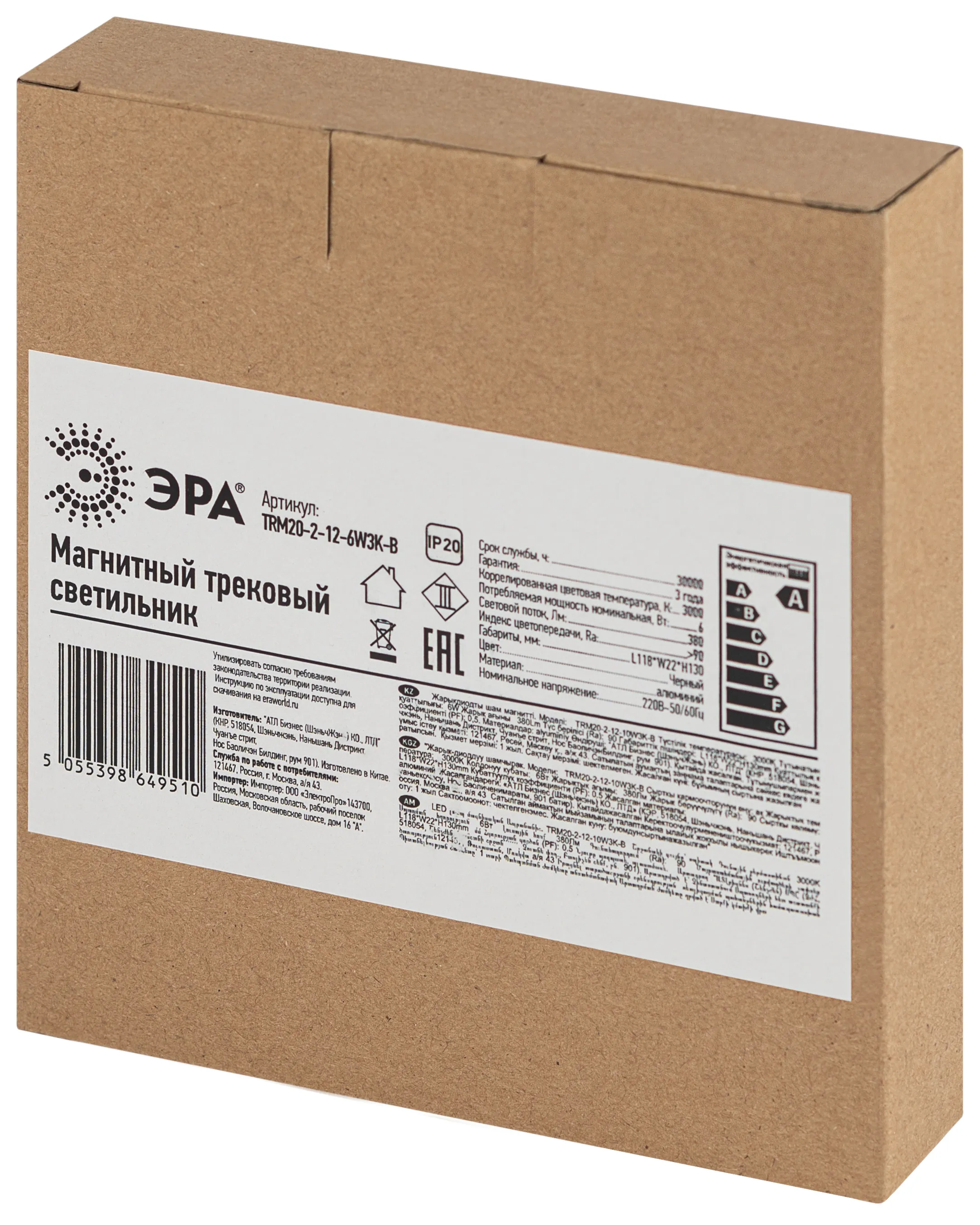 Магнитный трековый светильник эра trm20-2-12-6w3k-b б0054804