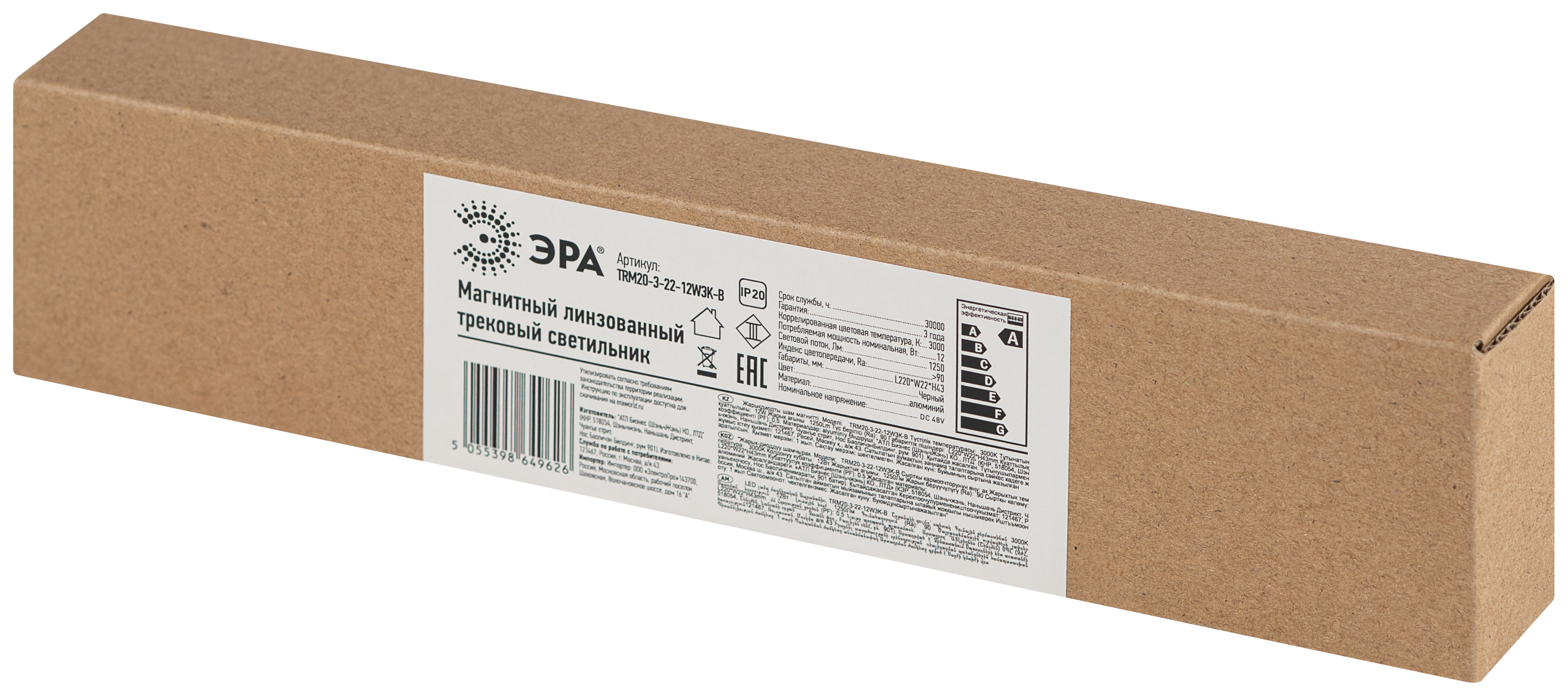 Магнитный линзованный трековый светильник ЭРА TRM20-3-22-12W3K-B. Цветовая температура 3000К, индекс цветопередачи СRI>90. Мощность 12 ватт. Напряжение питания 48V. Материал корпуса алюминий. Светильник имеет направленный свет и подойдет для расстановки акцентов в помещении.