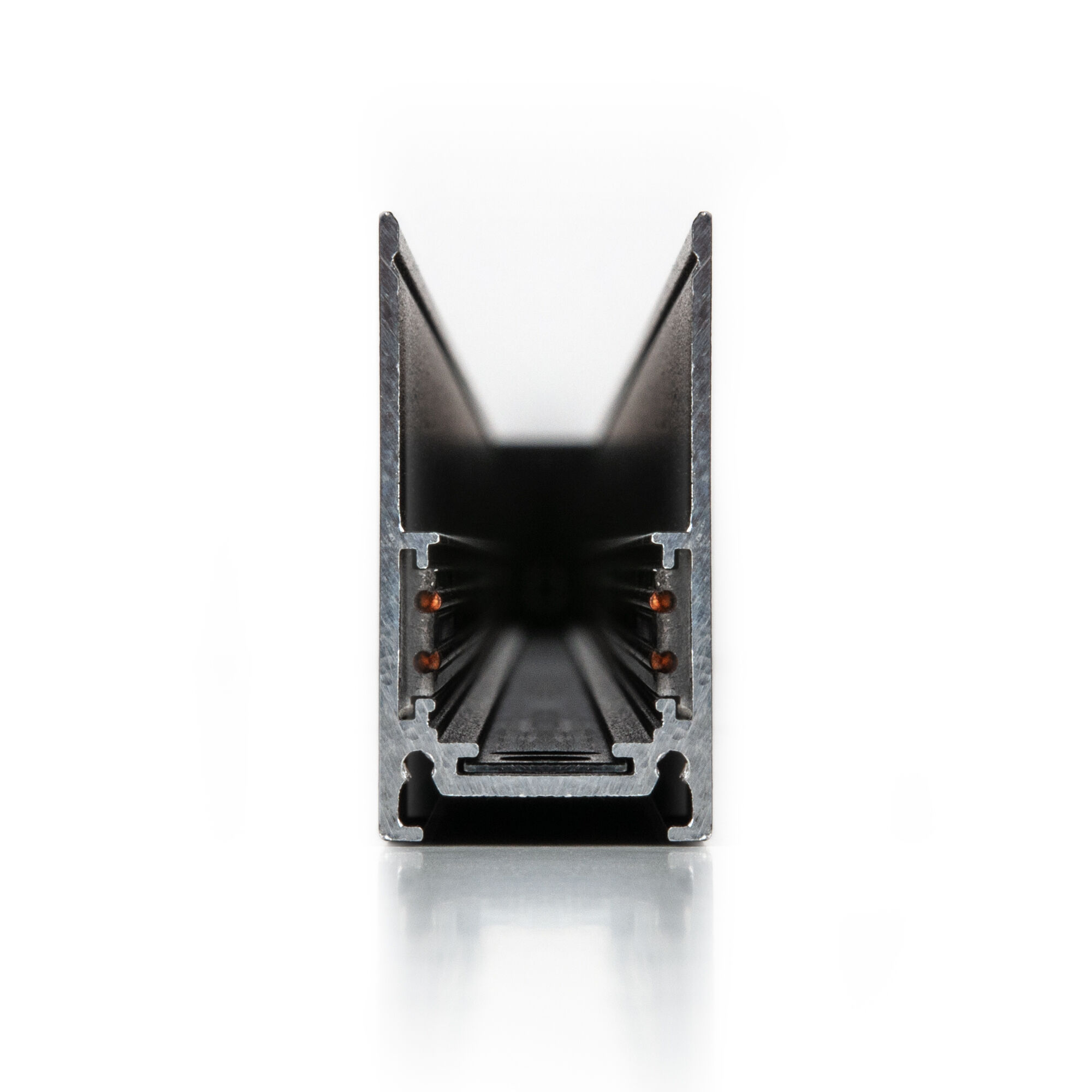 Шинопровод накладной черный 1м Slim Magnetic. Slim Magnetic — низковольтная трековая магнитная система освещения. Благодаря низкому напряжению 48 В является безопасной в использовании и может быть установлена как на потолок, так и на стены. Светильники держатся на шинопроводе с помощью магнитных креплений, что позволяет свободно перемещать и добавлять новые источники света по всей длине трека без дополнительного монтажа. Для максимальной надежности светильники дополнительно оснащены фиксатором с кнопочным механизмом.