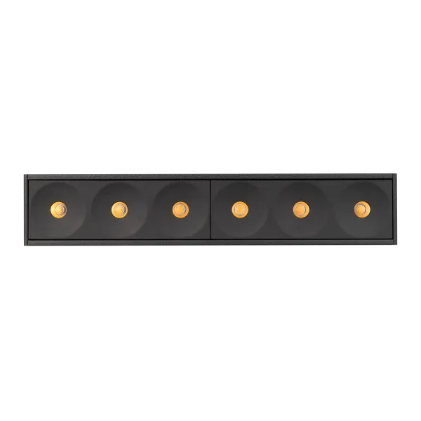 Светильник для магнитных треков шириной 45 мм, 6 Вт. Цвет свечения ТЕПЛЫЙ 3000K, световой поток 230 лм, угол 20°, CRI>90. Корпус прямоугольный, металл, цвет черный, IP20. Размеры LxWxH 184x35x43 мм. Входное напряжение DC24V, мощность 6 Вт. Драйвер DС24V/AC230V поставляется отдельно. Диммируется только с 026407(1), 027633.