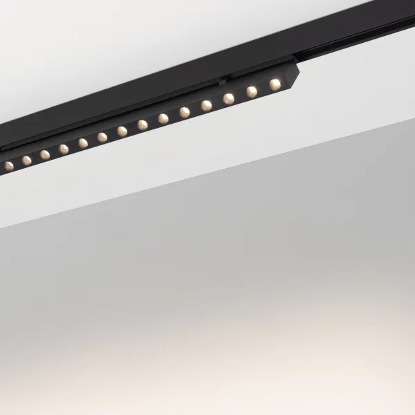 Светильник поворотный для магнитных треков шириной 25мм, 30Вт. Цвет свечения ДНЕВНОЙ 4000K, световой поток 1700лм, угол 30°, CRI>90. Корпус прямоугольный, металл, цвет черный, IP20. Размеры LxWxH 1004x20x46мм. Входное напряжение DC24V, мощность 30Вт. Драйвер DС24V/AC230V поставляется отдельно. Диммируется только с 026407, 027633.