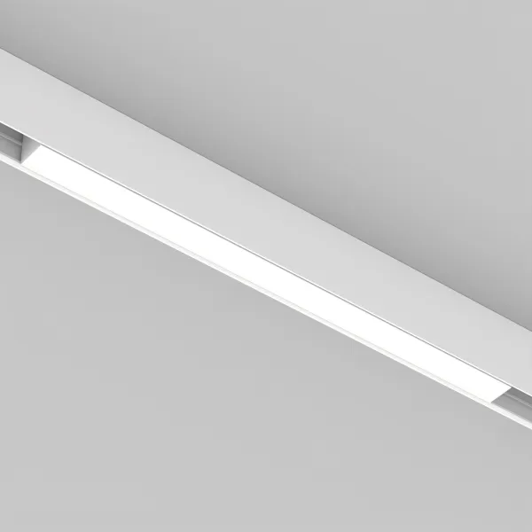 Светильник для магнитных треков шириной 45мм, 18Вт. Цвет свечения ДНЕВНОЙ 4000K, световой поток 1900лм, угол 100°, CRI>90. Корпус прямоугольный, металл, цвет белый, IP20. Размеры LxWxH 604x35x43мм. Входное напряжение DC24V, мощность 18Вт. Драйвер DС24V/AC230V поставляется отдельно. Диммируется только с 026407(1), 027633.