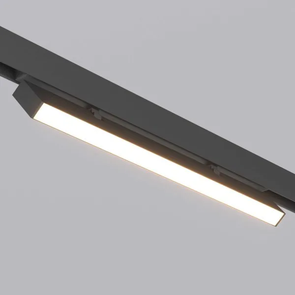 Светильник поворотный для магнитных треков шириной 25мм, 12Вт. Цвет свечения ДНЕВНОЙ 4000K, световой поток 990лм, угол 100°, CRI>90. Корпус прямоугольный, металл, цвет черный, IP20. Размеры LxWxH 404x20x46мм. Входное напряжение DC24V, мощность 12Вт. Драйвер DС24V/AC230V поставляется отдельно. Диммируется только с 026407, 027633.
