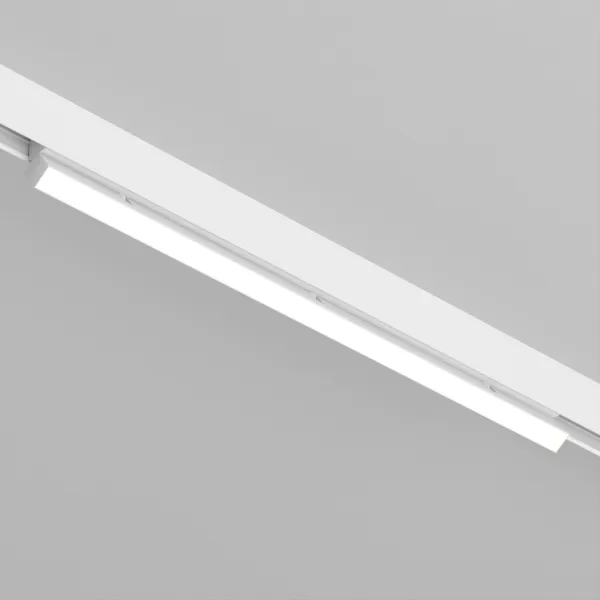 Светильник поворотный для магнитных треков шириной 45мм, 30Вт. Цвет свечения ДНЕВНОЙ 4000K, световой поток 3250лм, угол 100°, CRI>90. Корпус прямоугольный, металл, цвет белый, IP20. Размеры LxWxH 1004x35x92.5мм. Входное напряжение DC24V, мощность 30Вт. Драйвер DС24V/AC230V поставляется отдельно. Диммируется только с 026407(1), 027633.