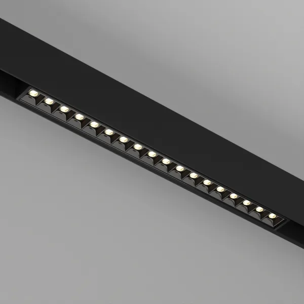 Светильник для магнитных треков шириной 45мм, 27Вт. Цвет свечения ТЕПЛЫЙ 3000K, световой поток 1680лм, угол 36°, CRI>90. Корпус прямоугольный, металл, цвет черный, IP20. Размеры LxWxH 481x35x43мм. Входное напряжение DC24V, мощность 27Вт. Драйвер DС24V/AC230V поставляется отдельно. Диммируется только с 026407(1), 027633.