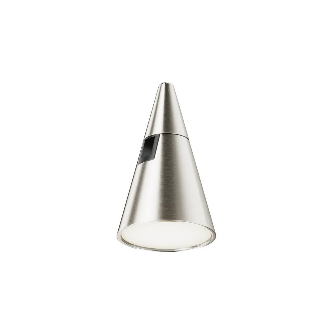Арматура и плафоны конической формы из алюминия в двух цветах – черном и латунь. Опаловый рассеиватель. Долговечные энергосберегающие источники LED-света бренда Osram. Цветовая температура 3000К, угол рассеивания 120°, коэффициент цветопередачи >90. Крепление магнитами на шинопровод с возможностью легкого перемещения светильников вдоль шины. Функция диммирования в группе возможна только в сочетании с блоками DALI/0~10V.