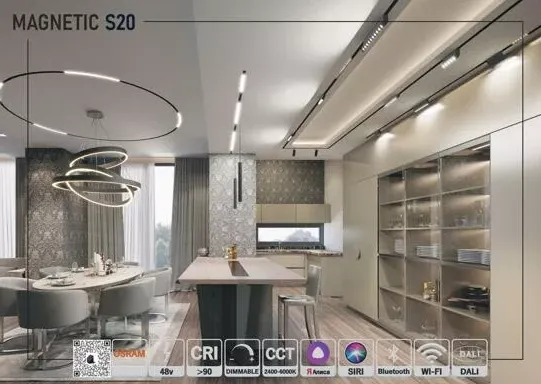 Профиль для установки натяжных потолков и трековой магнитной системы S20 | 58x55x1500mm 28685