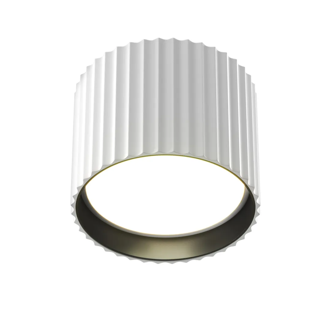 Дизайнерская серия. Графичая фактура. Поворотный механизм определенных моделей. В ассортименте накладные светильники, со встраиваемой чашей, настенные, подвесные, а также трековые модели для однофазного шинопровода. Три трендовых оттенка: чёрный, белый и латунь. Источник света - сменная лампа с цоколем GU10.
