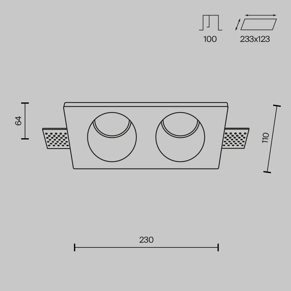 Серия встраиваемых светильников с современным дизайном корпуса и возможностью легкой интеграции в архитектуру освещаемого пространства. Разнообразие размеров, форм и световых эффектов позволяет без труда подобрать необходимую для реализации проекта модель. Светильники изготовлены из гипса с возможностью окрашивания. В качестве источника света рекомендуется использовать лампы Voltega (art. 7060/7061) мощностью 7W и углом рассеивания 38°. Диммируемые версии ламп — art. 7108/7109. У модели DL002-1-02-W лампы установлены под углом 30°. Модель подходит для подсветки стен или основного освещения.