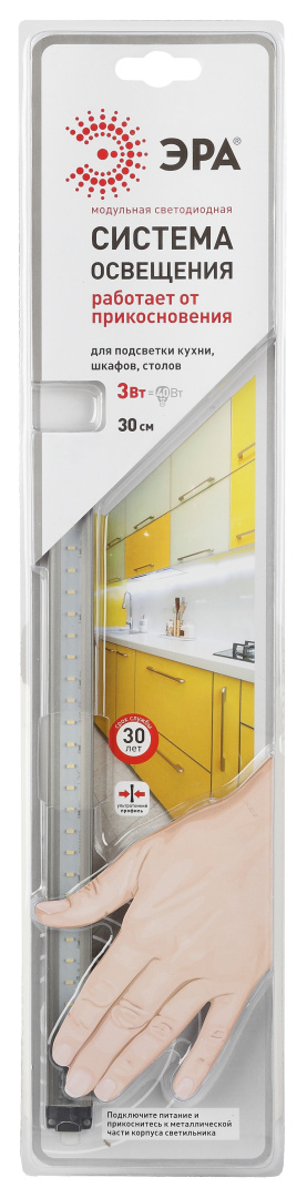 Светодиодный модуль с управлением от датчика прикосновения, мощность 3Вт. Срок службы 30000 часов. Напряжение питания 12В DC. Цветовая температура 4000K. Комплектация: светильник, источник питания, крепежные клипсы, двусторонний скотч