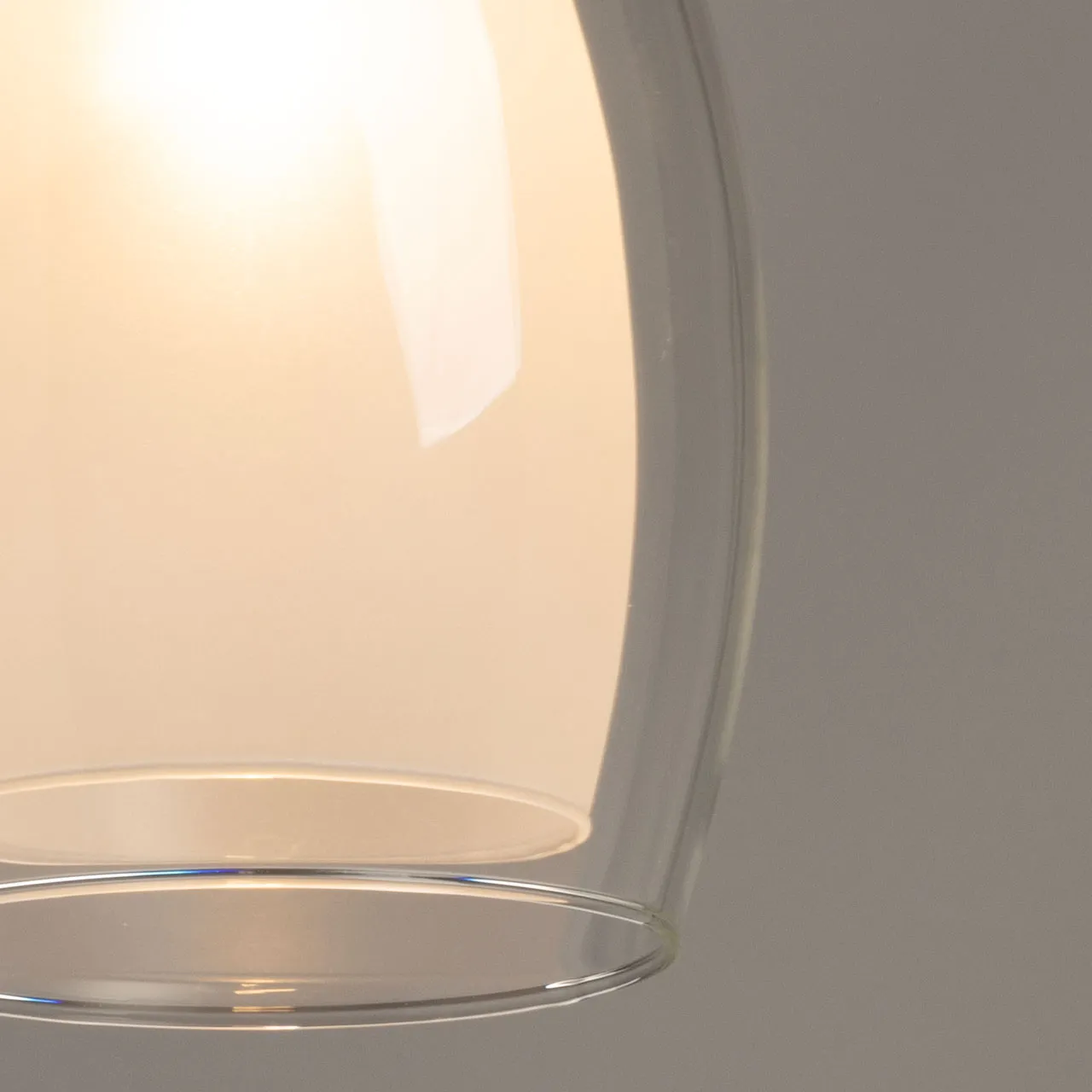Металлическое основание подвеса гальванизировано в цвет хрома. Традиционный источник света закрыт двумя стеклянными плафонами: внутренний белый, снаружи прозрачный….- прозрачного цвета, наружный - белого матового.
