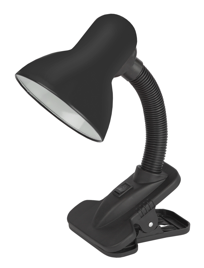 Металлический плафон. Направление света регулируется гибкой стойкой, которая обеспечивает наклон и поворот плафона в любом направлении. Выключатель на прищепке. Классический дизайн.