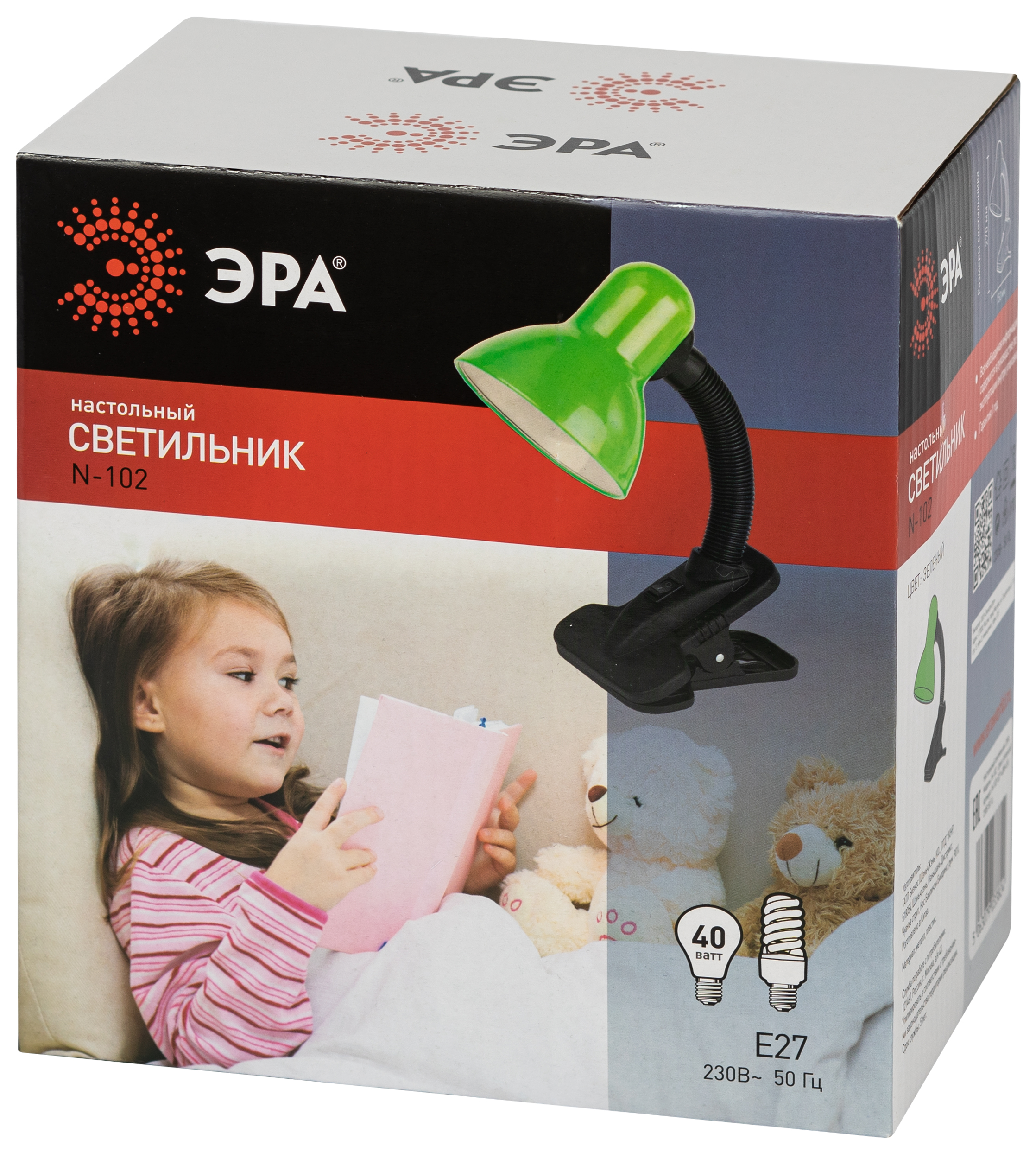 Настольный светильник с металлическим плафоном. Направление света регулируется гибкой стойкой, которая обеспечивает наклон и поворот плафона в любом направлении. Выключатель на прищепке. Классический дизайн. Предназначен для использования с лампой накаливания или компактной люминесцентной лампой (КЛЛ).