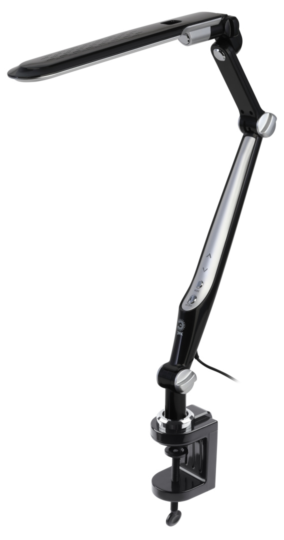 Настольный светильник ЭРА NLED-496-12W-BK со светодиодами (LED) в качестве источников света. Оснащен сенсорным управлением с возможностью выбора цветовой температуры (теплый, нейтральный или холодный свет). Плавный диммер для регулировки яркости. Светильник сохраняет выбранные настройки при включении-выключении. Высота плафона регулируется двухсекционной сгибающейся стойкой, направление света регулируется поворотом и наклоном плафона в любую сторону. Удобное крепление на струбцину.