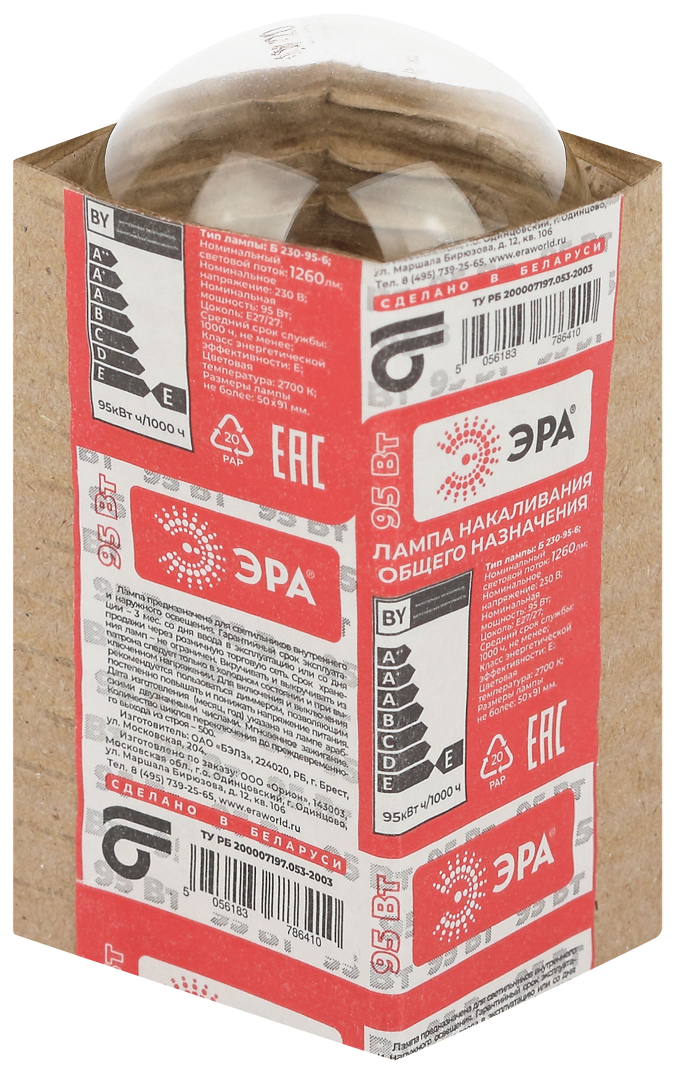 Лампа накаливания вольфрамовая для бытового и аналогичного общего освещения. Предназначена для использования в светильниках внутреннего и наружного освещения в сетях переменного тока напряжением 220 В, частотой 50 Гц. Прозрачная колба лампы создана специально для эффектов абсолютно чистого, искрящегося света.