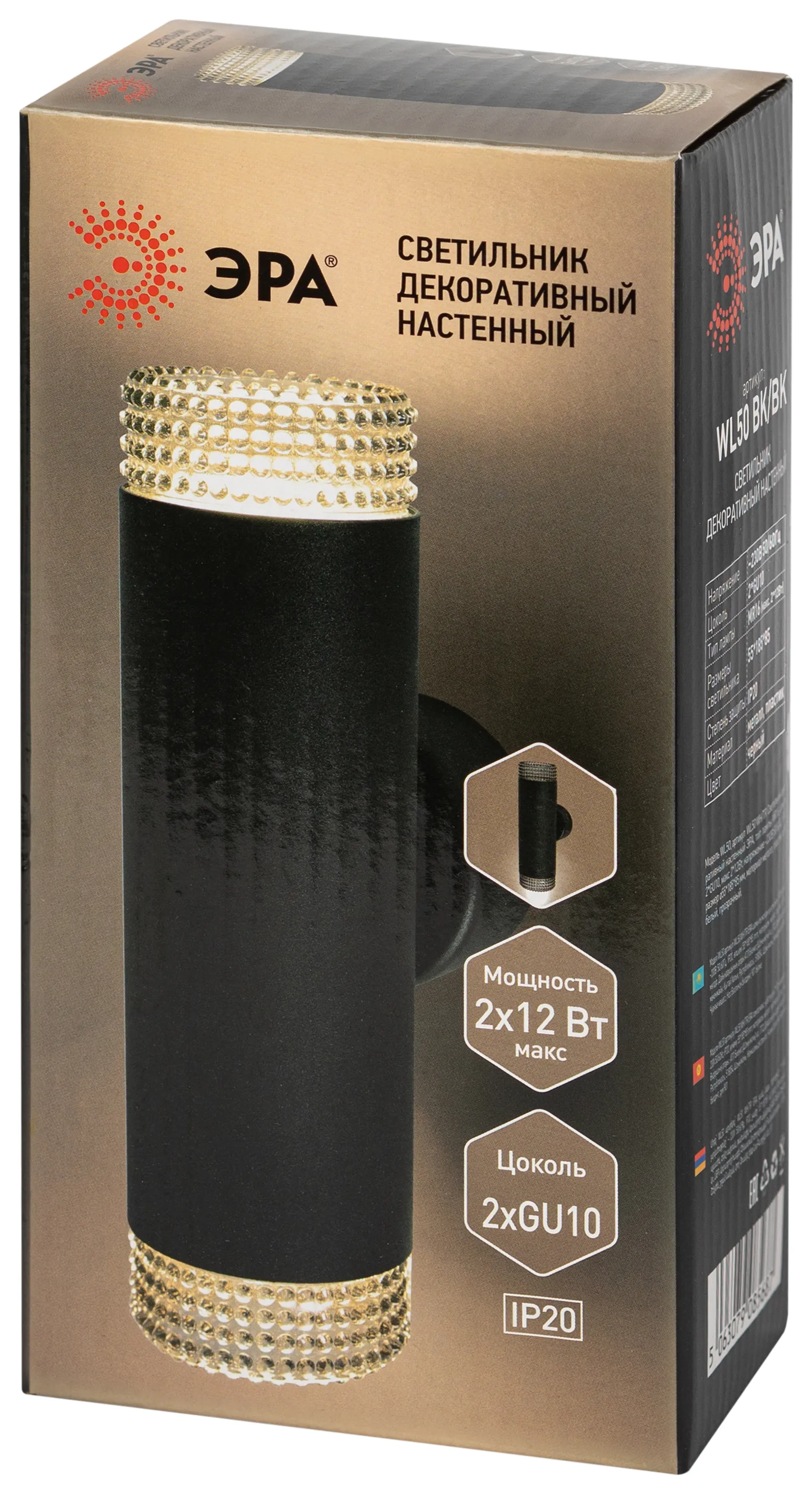 Светильник настенный декоративный WL50 BK/BK идеально подойдет для интерьера в стиле классика, неоклассика, шебби-шик. Может быть использован на кухне, в спальне, в детской, в гостиной, а так же в коммерческих помещениях соответствующего стиля. Корпус светильника выполнен из металла, декоративная часть из акрила, окрашенного в массе, с фактурой кристаллов. Свет от лампы MR-16 проникает в декоративный рассеиватель и создает дополнительное свечение в помещении: прозрачный распределяет свет вокруг, дымчатый приглушает яркость лампы. Цоколь для источника света GU10, напряжение питания 230В ~50/60Гц, материал металл, акрил, цвет светильника черный, размер D55х185х85мм, максимальная мощность лампы 2*12Вт, степень защиты IP20