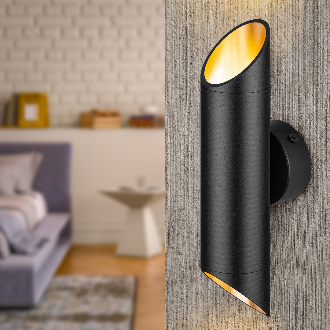 Настенный декоративный светильник WL52 BK/GD прекрасно дополнит декор коридора, спальни, гостинной комнаты. Пучки направленного света – это ультрамодный тренд, часто используемый дизайнерами в интерьере комнаты. Они помогают подчёркивать структуру материалов стен, а также сделать акциент на определенной области/детали. Корпус выполнен из металла. Внутренняя часть кольца внизу светильника имеет золотое гальваническое покрытие, которое придает мягкое золотое свечение свету лампы при включении. Цоколь для источника света GU10, напряжение питания 230В ~50/60Гц, материал металл, цвет светильника черный, золото, размер 55x250х85мм, максимальная мощность лампы 12Вт, степень защиты IP20