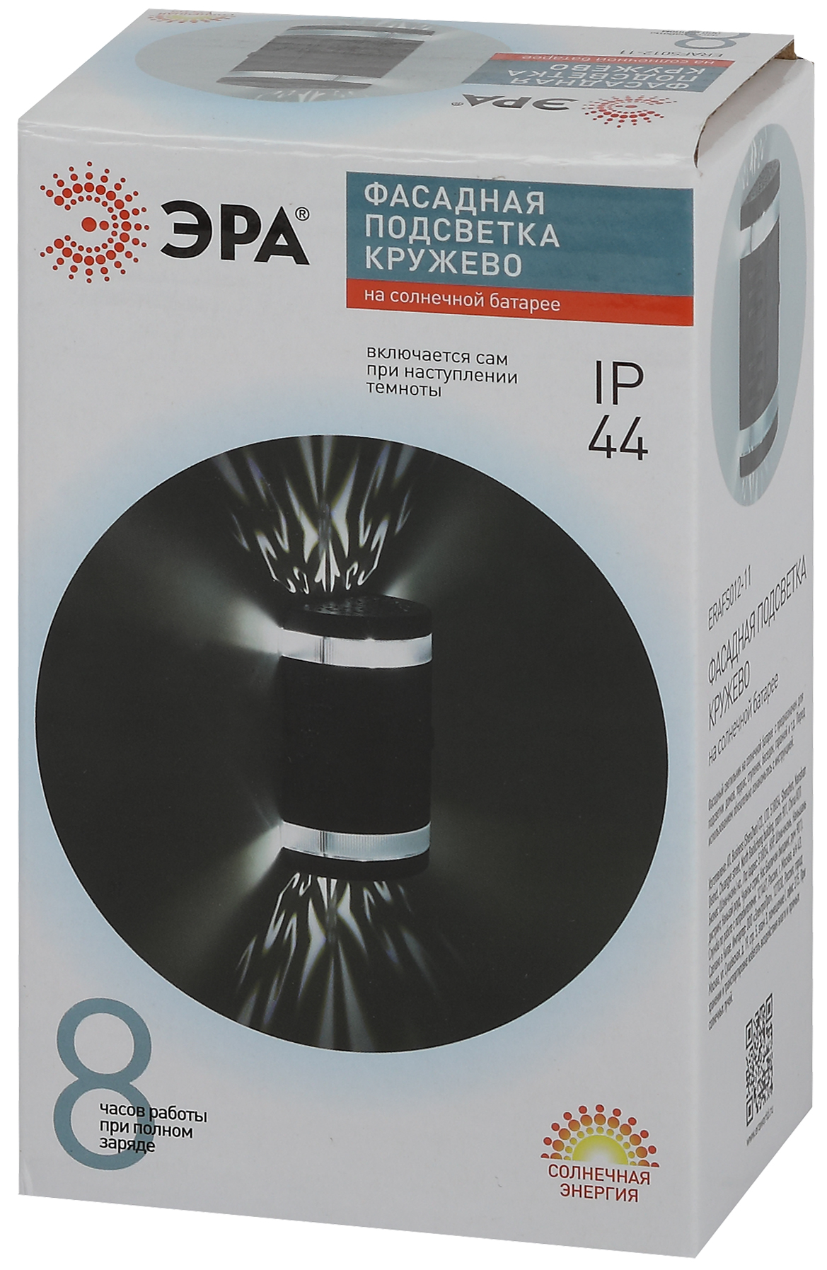 Уличный настенный светильник со световым кружевным эффектом. В светильник фасадный ЭРА ERAFS012-11 (арт. Б0057598) встроены 2 ярких светодиода белого цвета. Специальная перфорация корпуса формирует неповторимый световой рисунок. Беспроводные фасадные светильники ЭРА «Кружево» практичны и экономичны. В эти светильники для улицы встроены солнечные панели, которые накапливают световую энергию днём. Ночью красивая подсветка фасадная включается автоматически. Одного полного заряда хватает на свечение в течение 8 часов. Утром светильник снова начнёт заряжаться. Прочные материалы корпуса, влаго- и пылезащита позволяют применять такие светильники на солнечной батарее в любую погоду и в течение всего года.