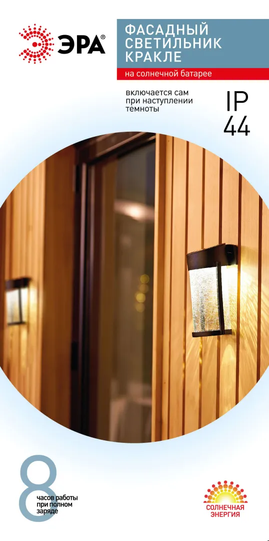 Светильник уличный erafs012-15 на солнечной батарее настенный кракле 10x10x18.5 см 1 led б0062402