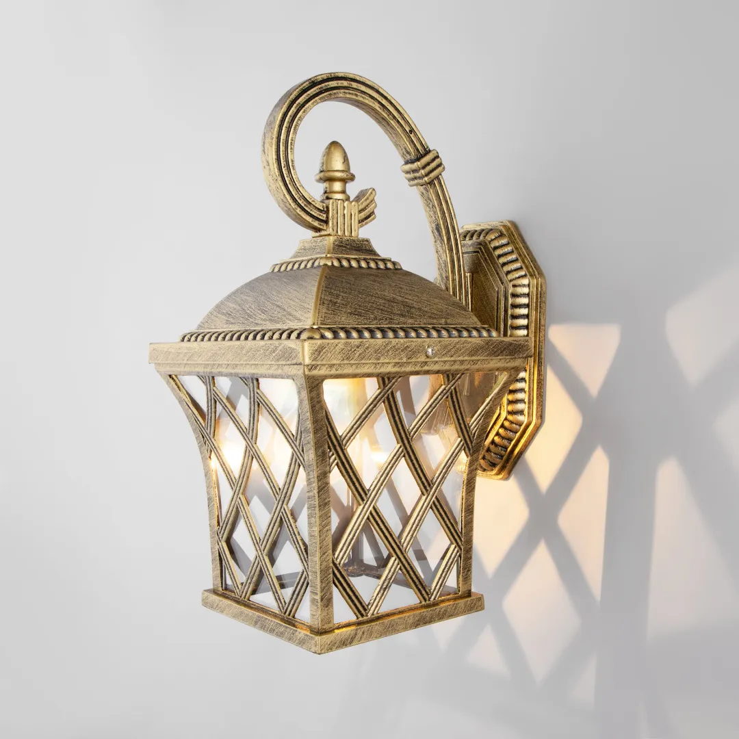 Уличный настенный светильник Cassiopeya D черное золото IP44 предназначен для создания дополнительного освещения, а также декоративной подсветки снаружи и внутри помещений. Благодаря стеклянному плафону создает мягкое равномерное свечение. В качестве источника света используются сменные лампы с цоколем E27. Патрон рассчитан на максимальную мощность ламп накаливания 60 Вт.
