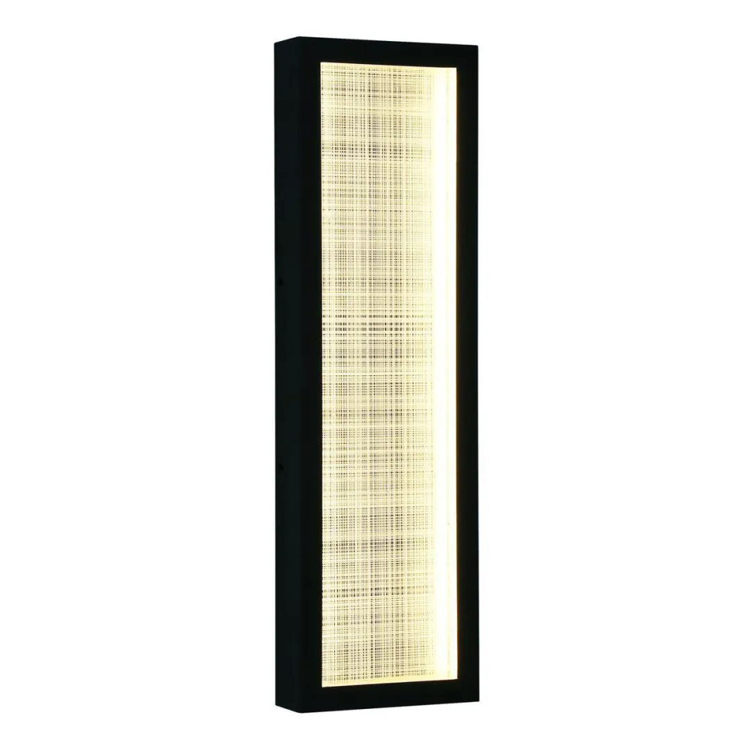 Каркас матового черного цвета, плафон украшен узором пересекающихся насечек, внутренний периметр каркаса освещен LEDлентой, P65.