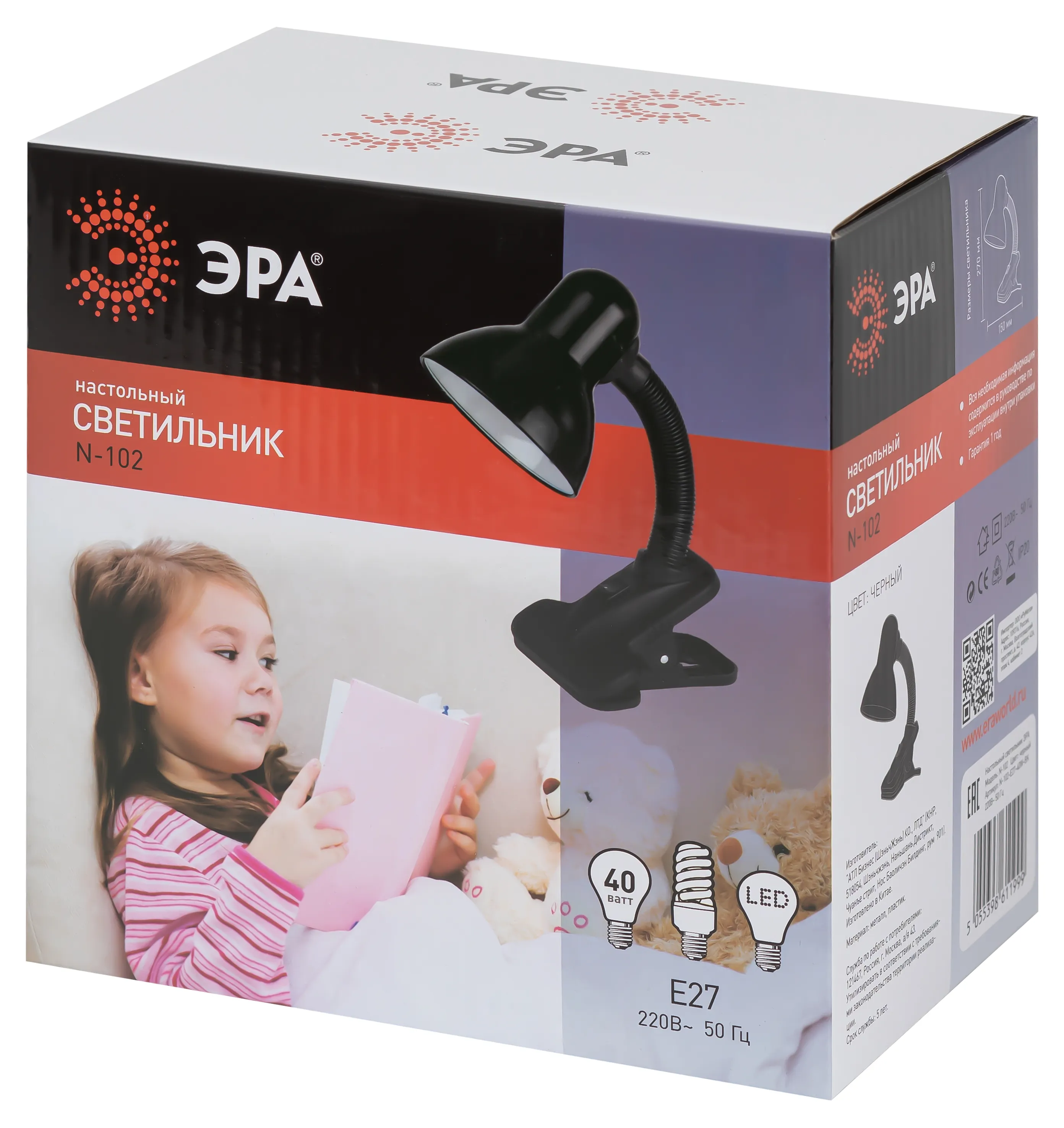 Предназначен для использования с лампой накаливания или компактной люминесцентной лампой (КЛЛ): максимальная мощность 40W, цоколь E27, 220V 50HZ, лампа в комплект не входит.