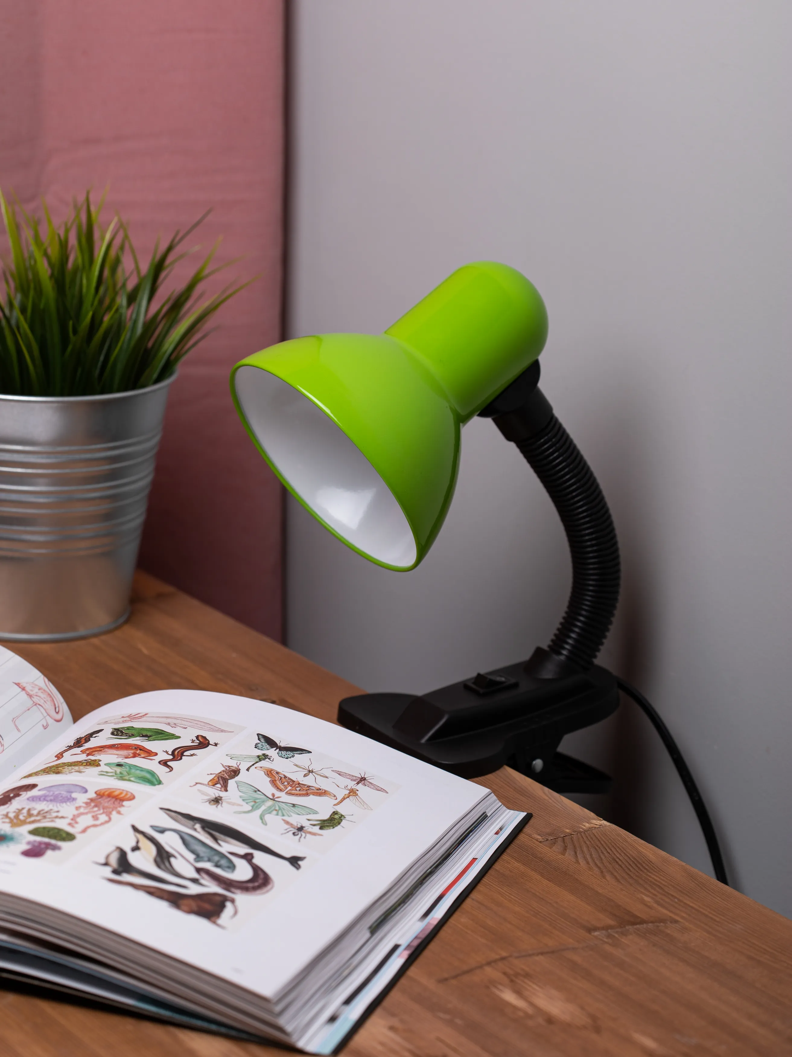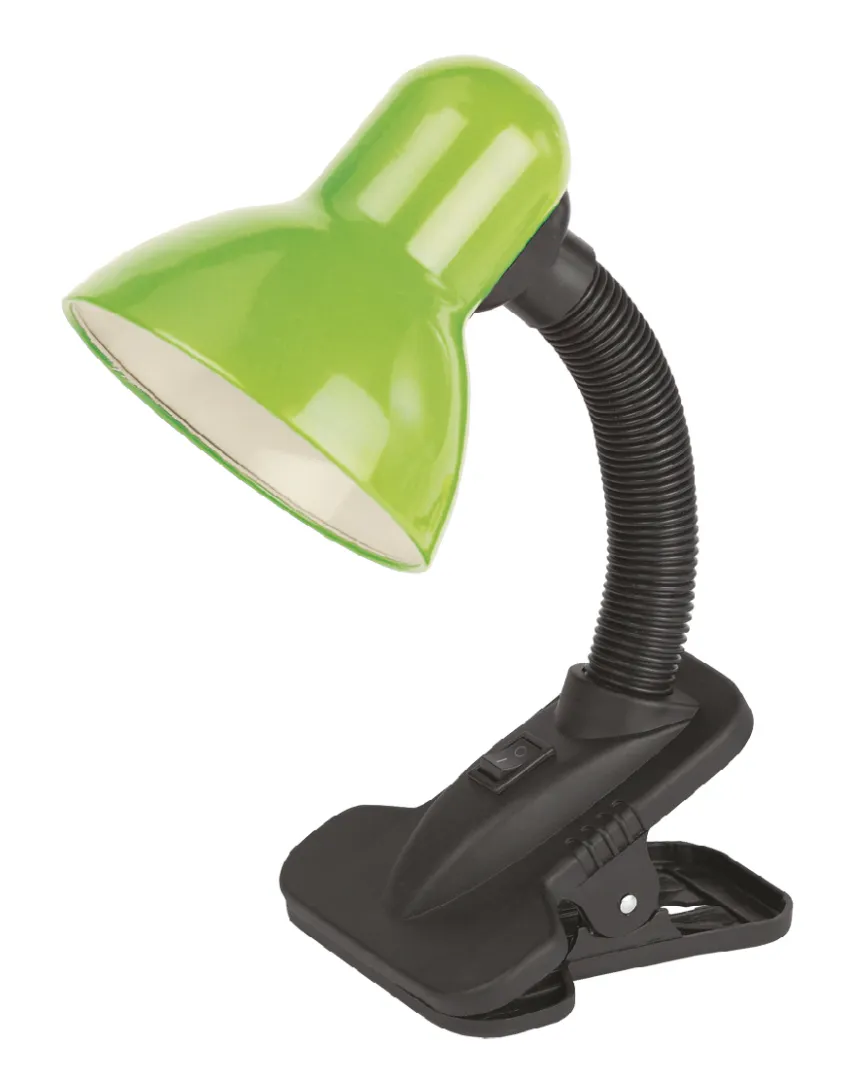 Направление света регулируется гибкой стойкой, которая обеспечивает наклон и поворот плафона в любом направлении. Выключатель на прищепке. Классический дизайн. Предназначен для использования с лампой накаливания или компактной люминесцентной лампой (КЛЛ).