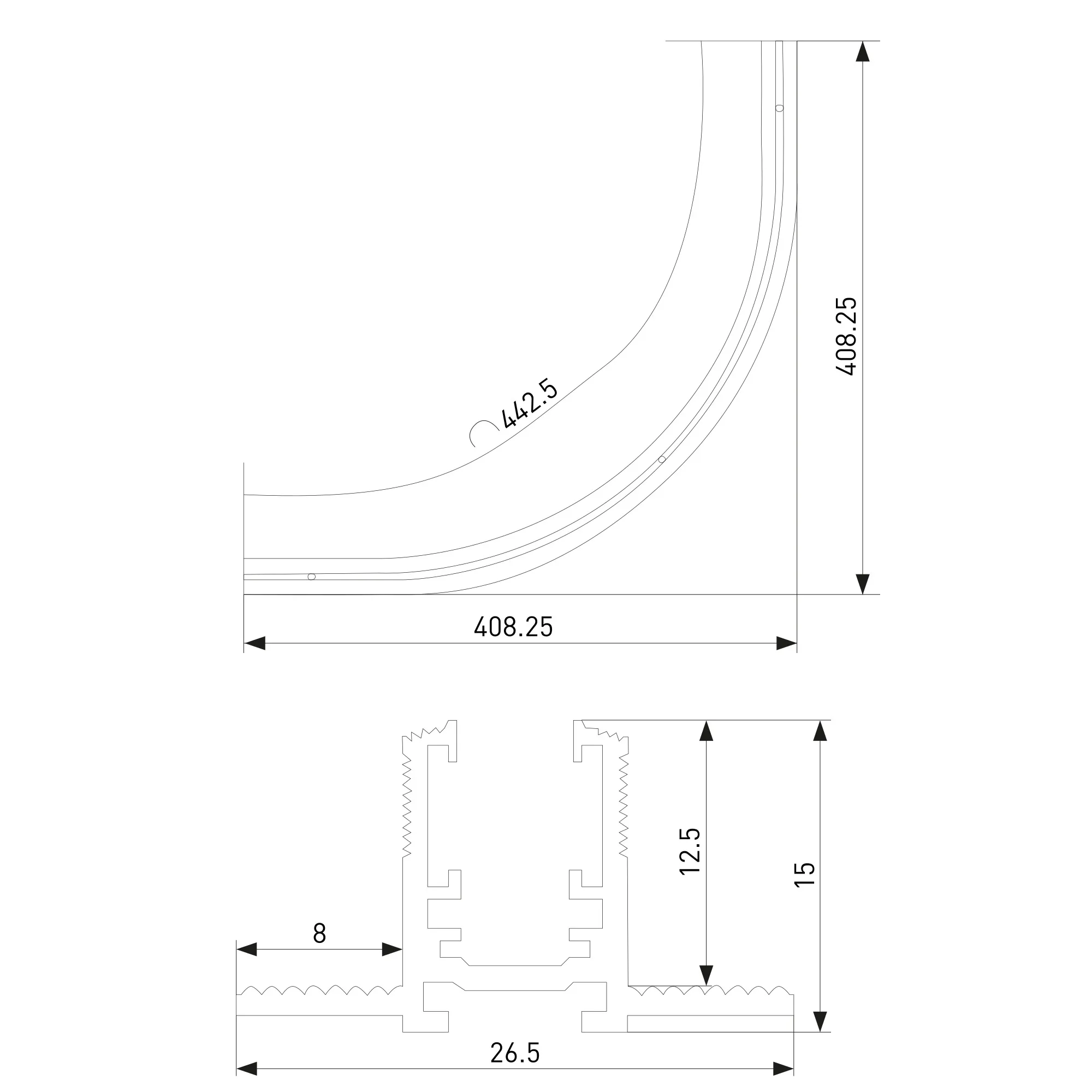Встраиваемый шинопровод под ГКЛ предназначен для установки в гипсокартонный потолок с шириной листа 12,5 мм. Конструкция позволяет разместить шинопровод между двух слоев гипсокартона, что делает потолок более надежным и прочным. Комбинация прямого и радиусного шинопроводов позволяет создавать плавные линии, добавляя элегантности и уникальности освещения пространства.