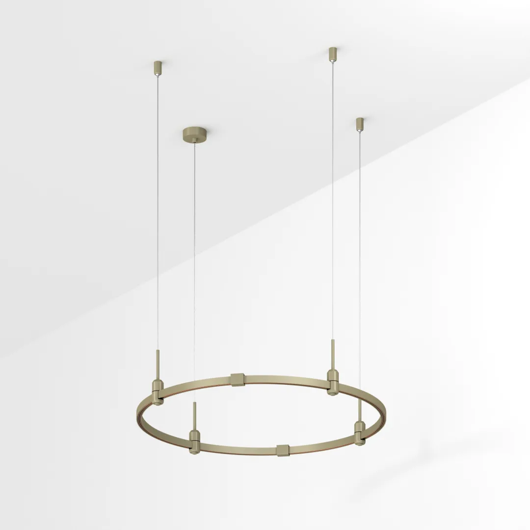 Подвесная конструкция APRIORI, форма круг. В комплекте треки с аксессуарами и гибкими подвесами. DC48V. Материал алюминий, цвет серо-оливковый. Размер: диаметр 800мм, высота 22мм. Светильники и источники питания приобретаются отдельно.