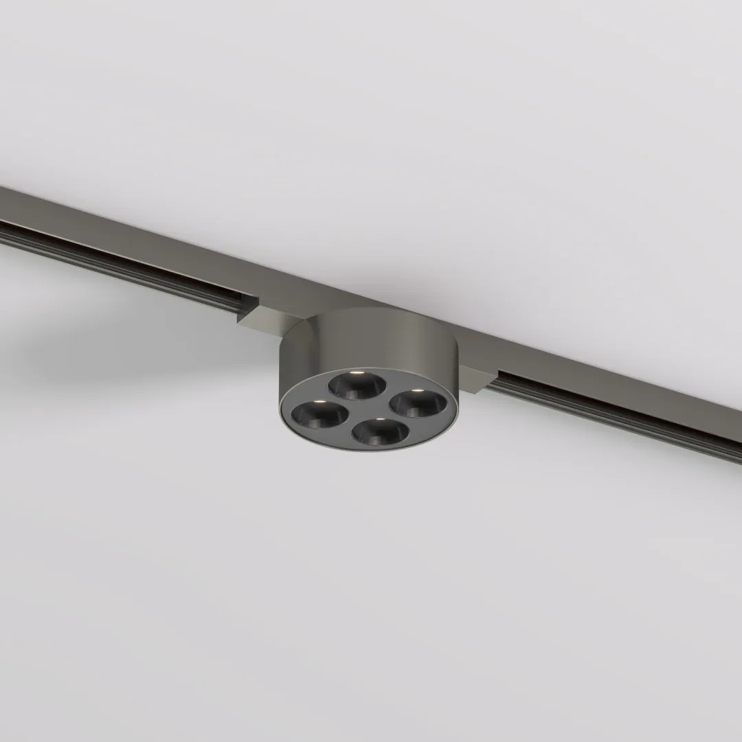 SHINE GRILL светильник со встроенным светодиодом для трековой системы SHINE. Корпус светильника изготовлен из алюминия, эффективно отводящего тепло, и имеет матовую шероховатую поверхность. Использованы светодиоды мощностью 6W с углом излучения 36° и высоким индексом цветопередачи CRI>90. Цветовая температура модели 3000К. Простая установка в любом месте трека. Модель представлена также в цвете сатинированная латунь. Срок гарантии 3 года.