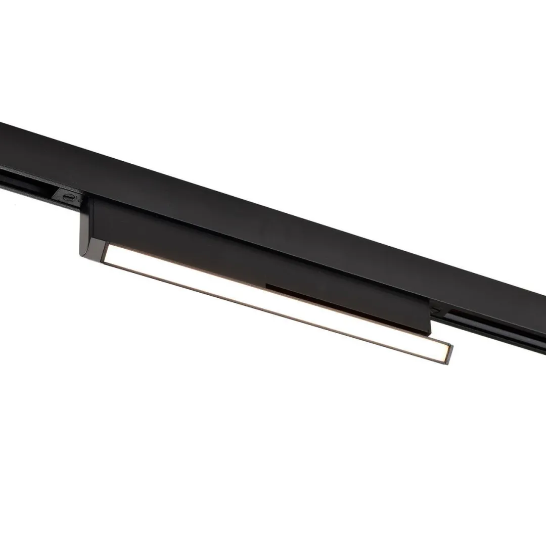 Трековый линейный поворотный светильник в черном цвете, угол рассеивания света 100°.