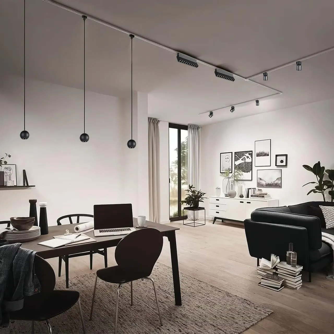 светильник для трековой системы в виде подвеса в черном цвете, с модулем LED,  36° угол рассеивания.