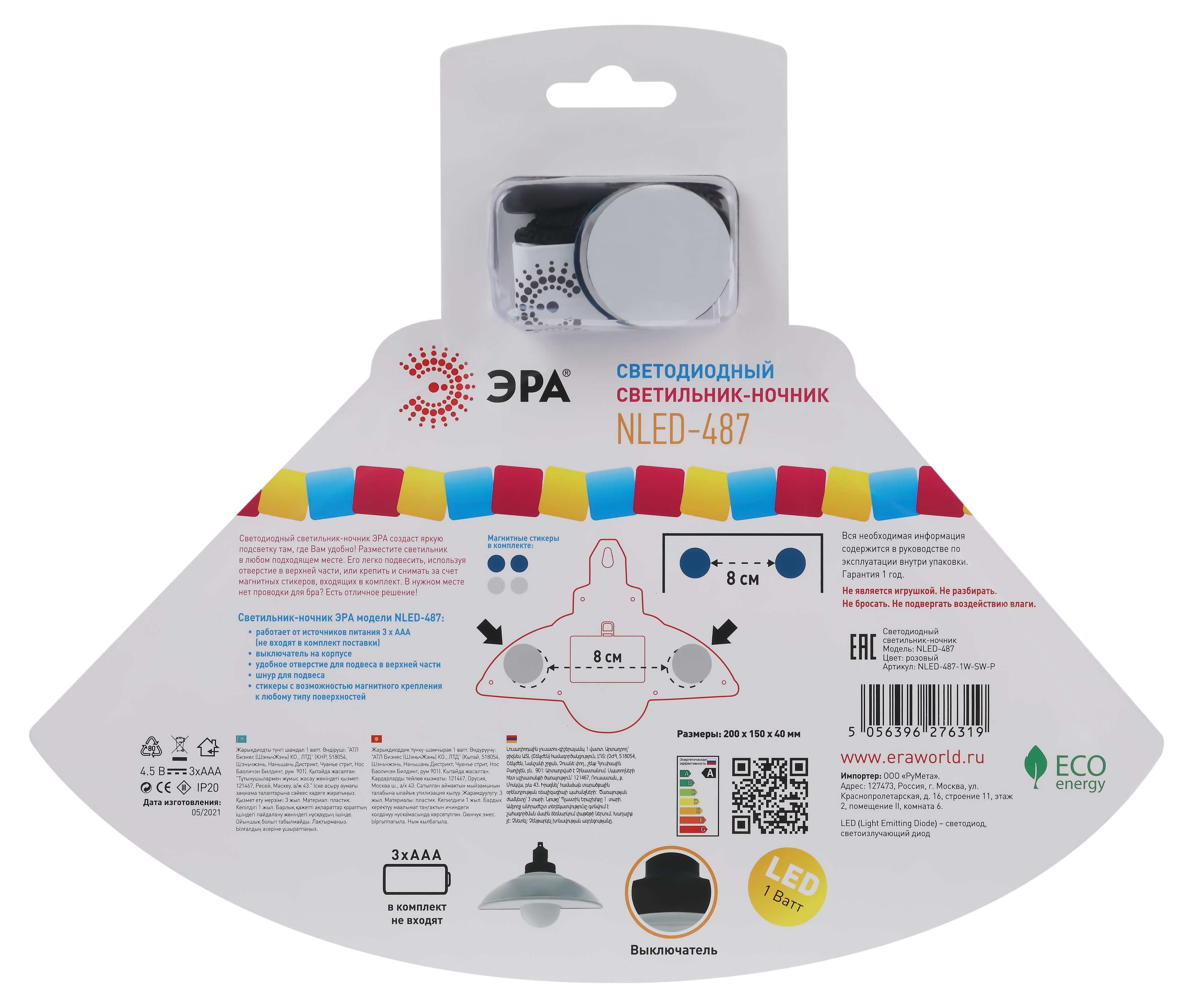 Автономный светильник-ночник на стену ЭРА NLED-487-1W-SW-P со светодиодами (LED), с выключателем на корпусе. Дизайн корпуса ночника выполнен в форме подвесного светильника в стиле ретро. Светильник автономный, работает от элементов питания 3 х ААА (не входят в комплект поставки). Светильник легко крепится к любому типу поверхностей и легко снимается для подзарядки благодаря магнитным стикерам, входящим в комплект. Светильник можно подвесить при помощи шнура длиной 1 м (в комплекте): в верхней части светильника имеется удобное отверстие для подвеса. Светодиодный светильник-ночник ЭРА станет отличным элементом декора и создаст яркую подсветку там, где вам удобно! Легкий доступ к батарейкам для замены. Поставляется в блистерной упаковке с евроотверстием.