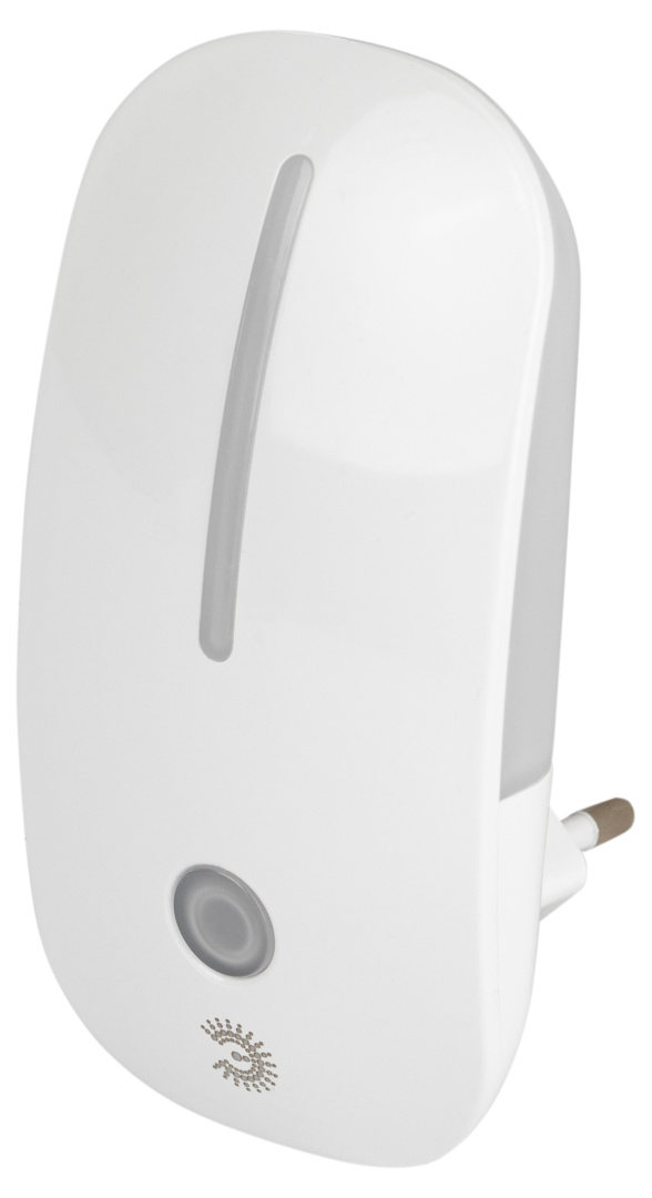 Светильник-ночник со светодиодами (LED) в качестве источников света. С сенсором света, включается автоматически, когда становится темно и так же сам гаснет с рассветом. Светодиодный ночник не мерцает, что помогает сохранить здоровье глаз. Минимальное потребление энергии позволяет использовать прибор всю ночь.