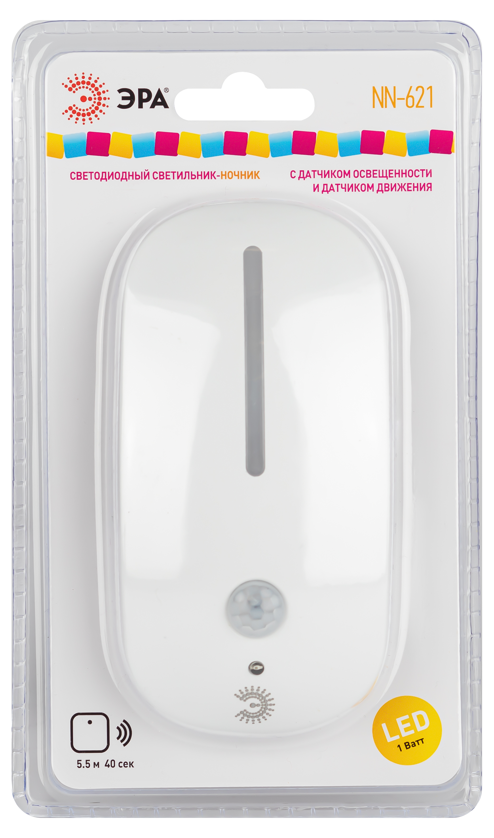 Светильник-ночник со светодиодами (LED) в качестве источников света. Удобная и функциональная модель с сенсором света и датчиком движения (включается автоматически от движения в зоне действия датчика движения, только когда темно. Светодиодный ночник не мерцает, что помогает сохранить здоровье глаз. Минимальное потребление энергии позволяет использовать прибор всю ночь.