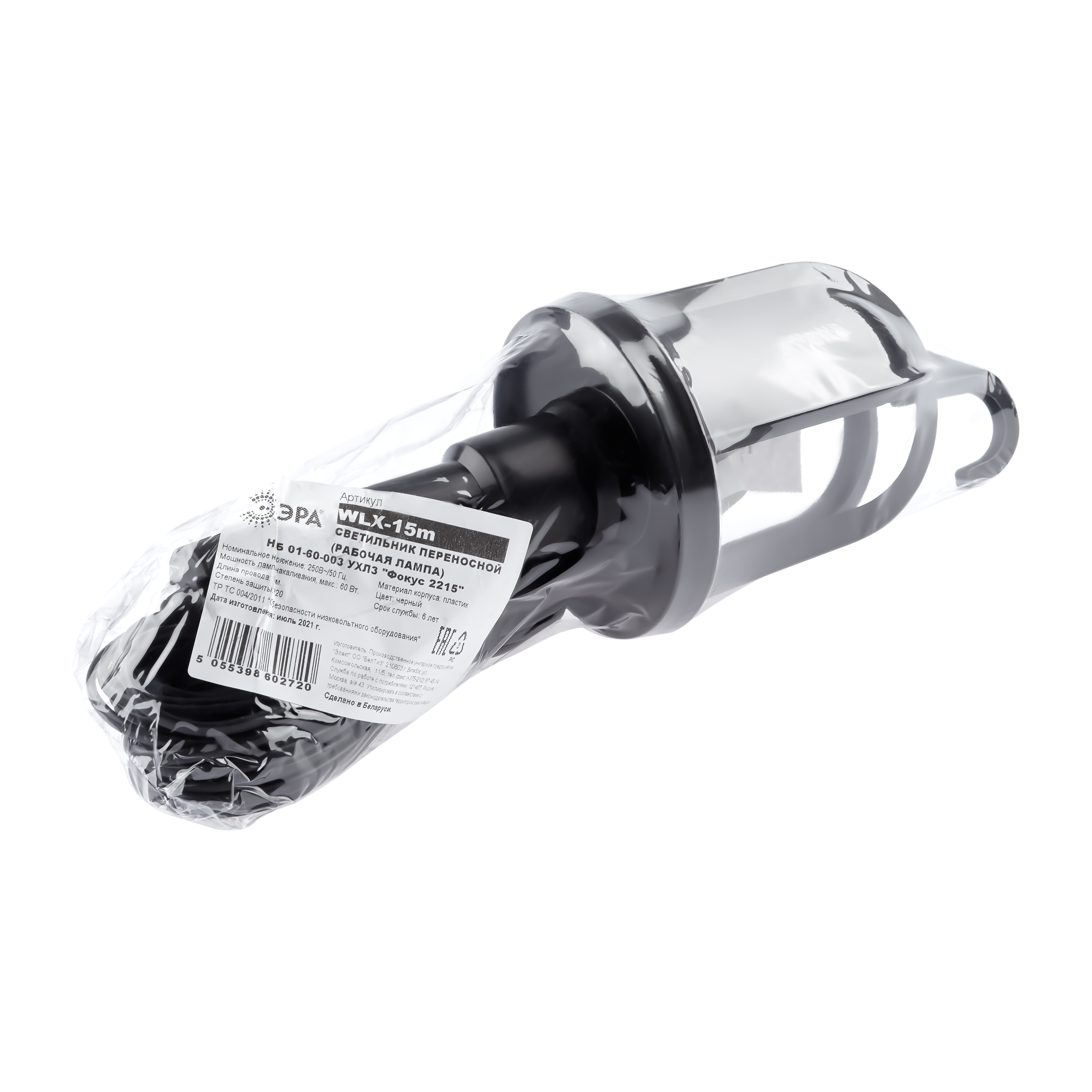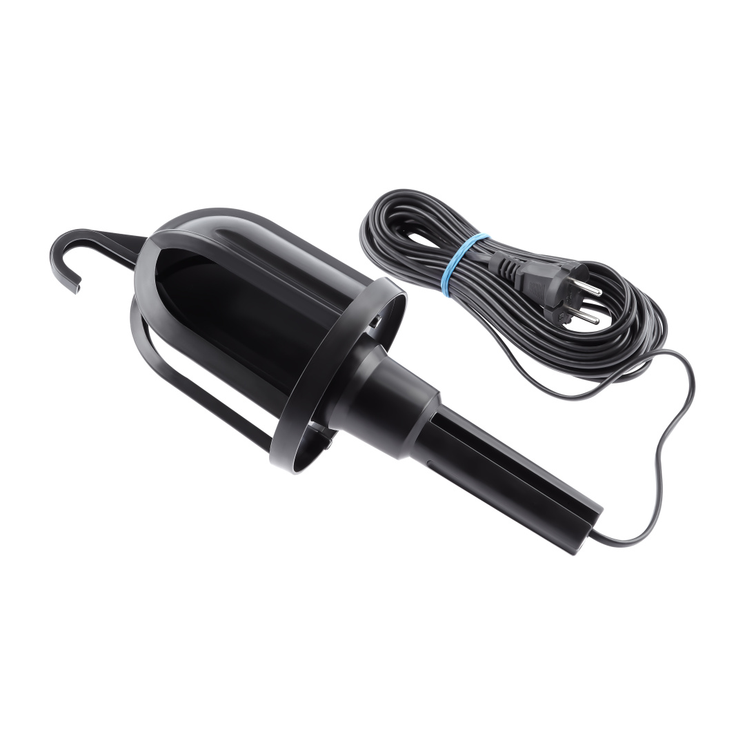 Светильник переносной под лампу с цоколем E27 (рабочая лампа). Предназначен для внутреннего освещения жилых и общественных помещений. Рассчитан для работы в сети переменного тока с номинальным напряжением 250 В и частотой 50 Гц. Максимальная мощность для лампы накаливания 60 Вт. Специальный подвесной крюк позволяет надежно закрепить светильник в момент эксплуатации, что делает его удобным для применения в гаражах или других подсобных помещениях.
