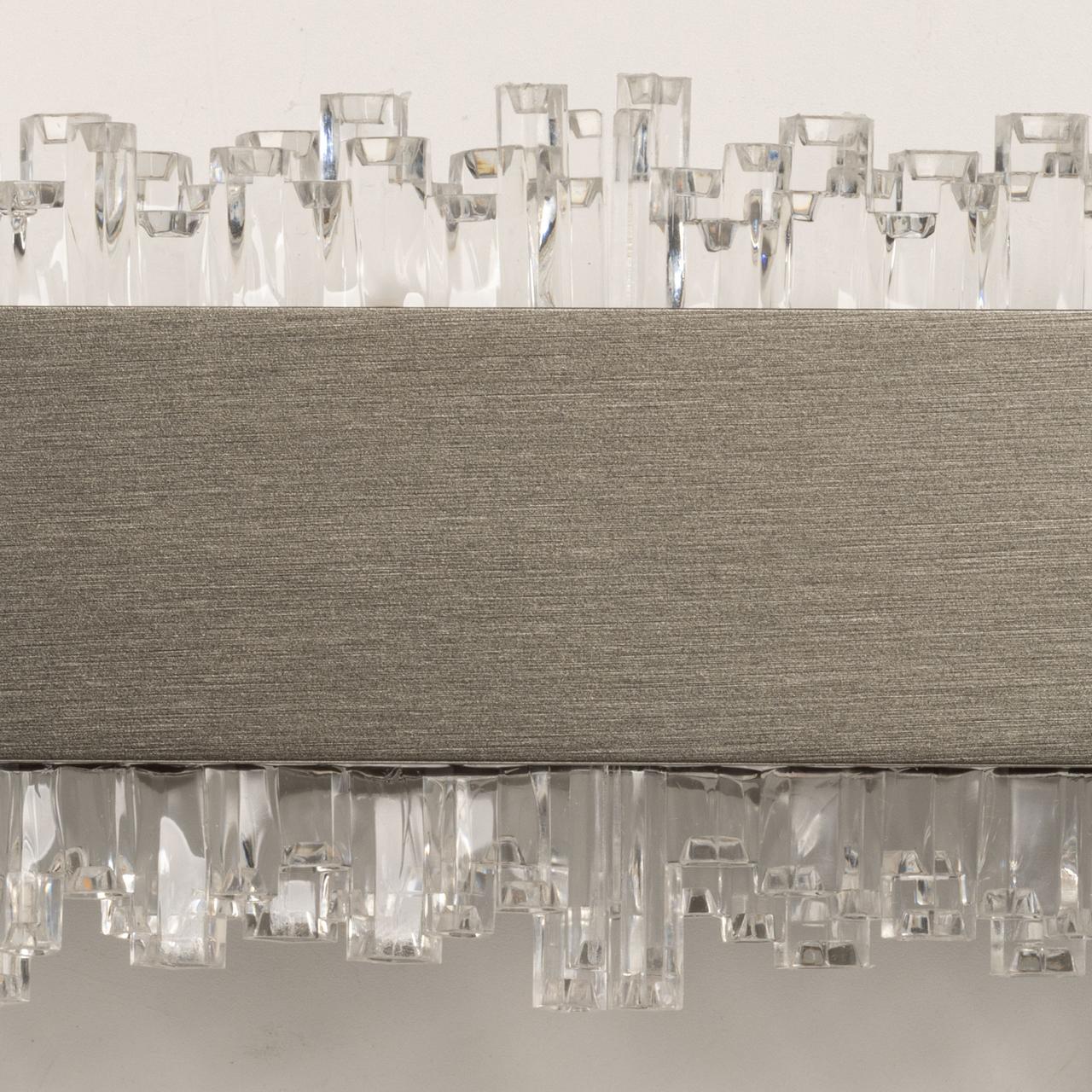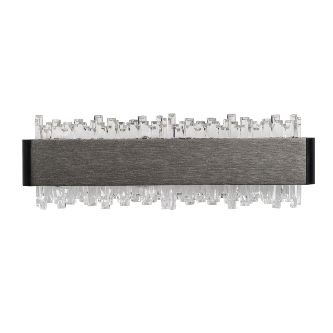 Металлическое основание бра окрашено в черный цвет. Плафон декорирован металлической пластиной, гальванизированной в цвет графита. Светодиодный источник света закрыт прозрачным акрилом.