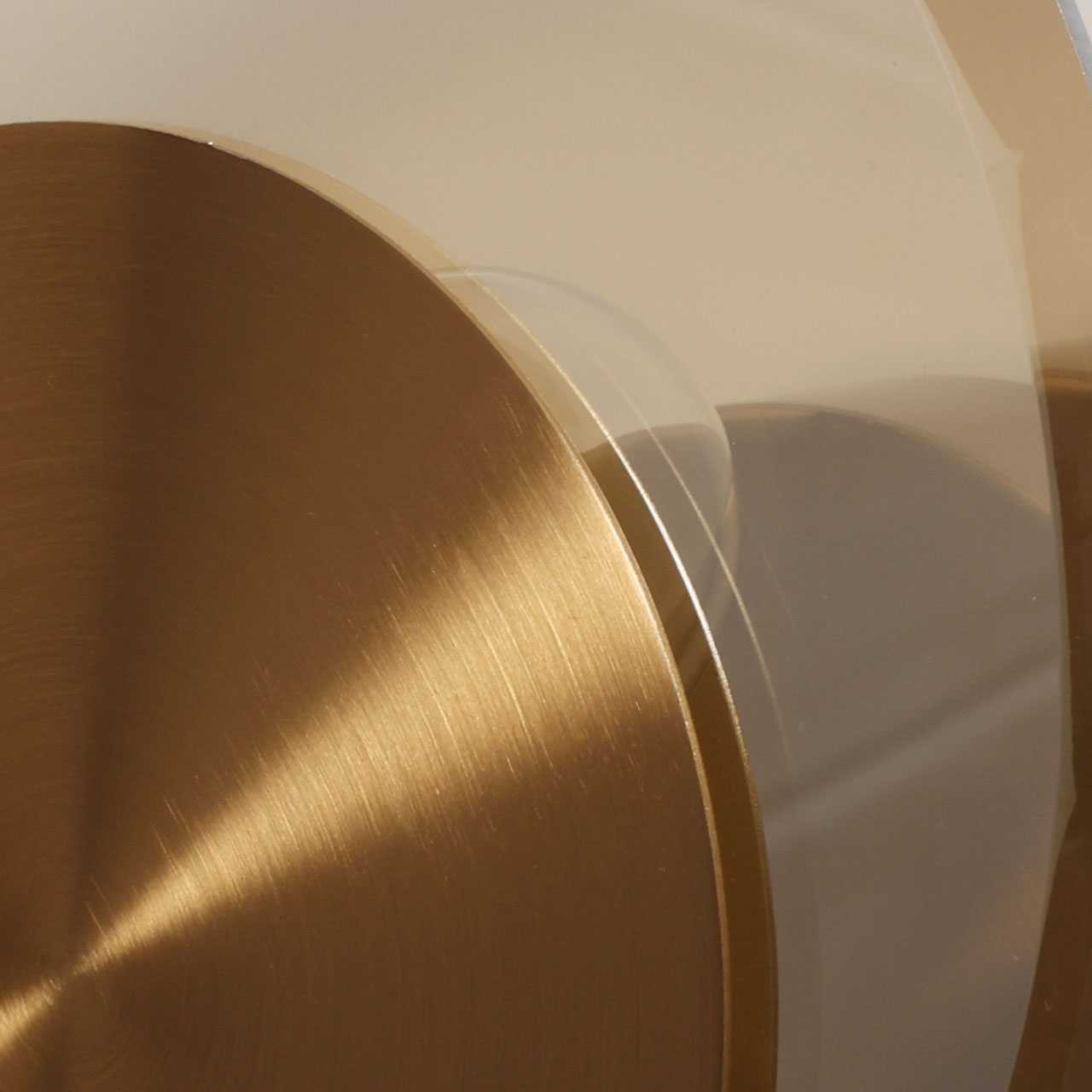 Металлическое основание настенного бра гальванизировано в цвет латуни. Светильник декорирован стеклянным элементом в форме круга, гальванизированным в цвет шампань и металлическим кругом, гальванизированным в цвет основания.