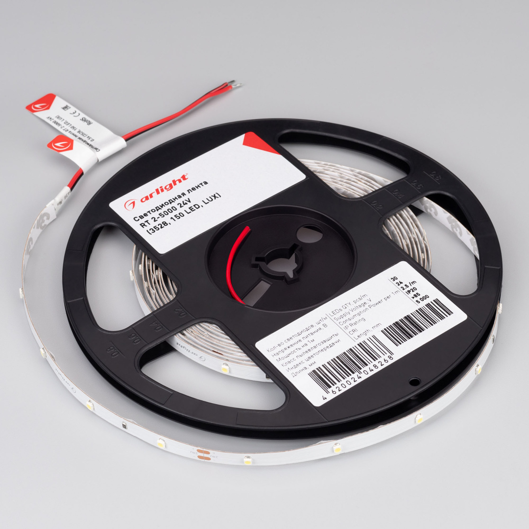 Светодиодная лента RT серии A30. Светодиоды SMD 2835, 30 шт/м, белая плата шириной 8 мм, скотч 3M. Цвет ХОЛОДНЫЙ 8000K, индекс цветопередачи CRI>85, угол 120°. Питание 24 В, мощность 2.9 Вт/м (14.5 Вт на 5 м). Размеры 5000x8x1.5 мм. Мин. отрезок 166.7 мм, 5 светодиодов. Цена за 1 м.