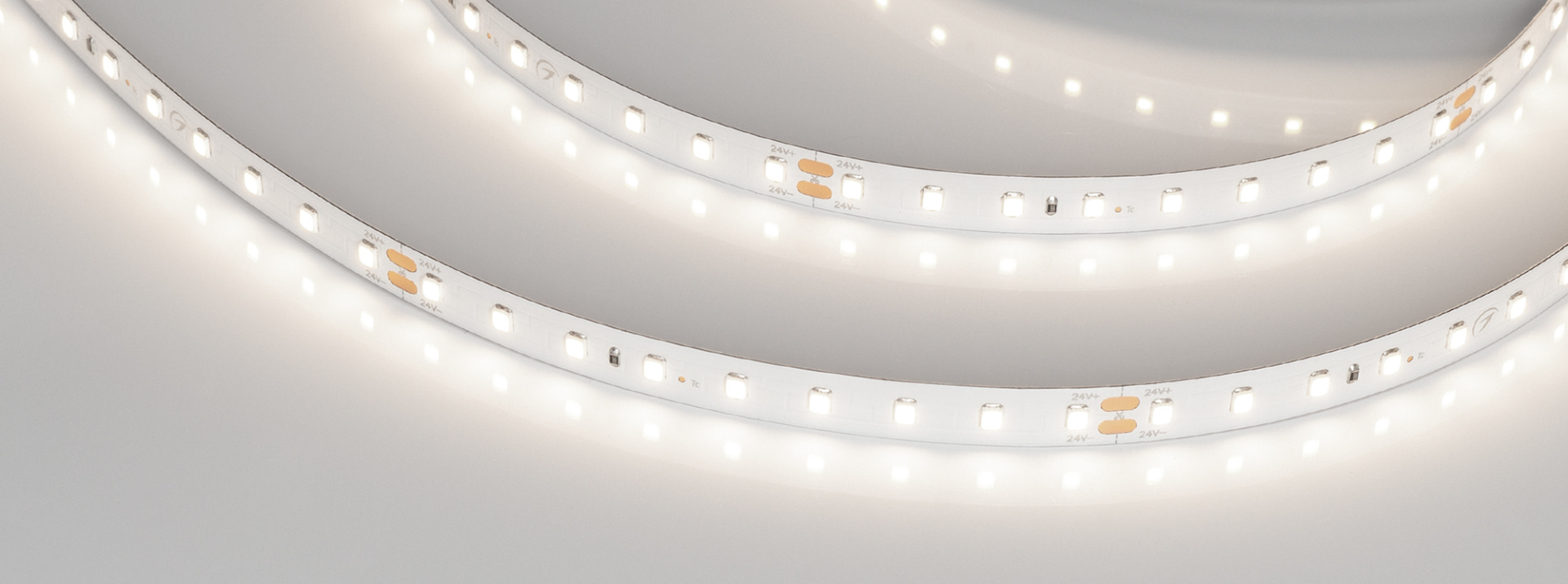 Светодиодная высокоэффективная лента ULTRA серии A90. Светодиоды SMD 2835, 90 шт/м, белая плата шириной 10 мм, скотч 3M. Цвет ДНЕВНОЙ 4000K, высокая световая эффективность 200 лм/Вт, индекс цветопередачи CRI>85, угол 120°. Питание 24 В, мощность 4.8 Вт/м (24 Вт на 5 м). Размеры 5000x10x1.6 мм. Мин. отрезок 100 мм, 9 светодиодов. Цена за 1 м.