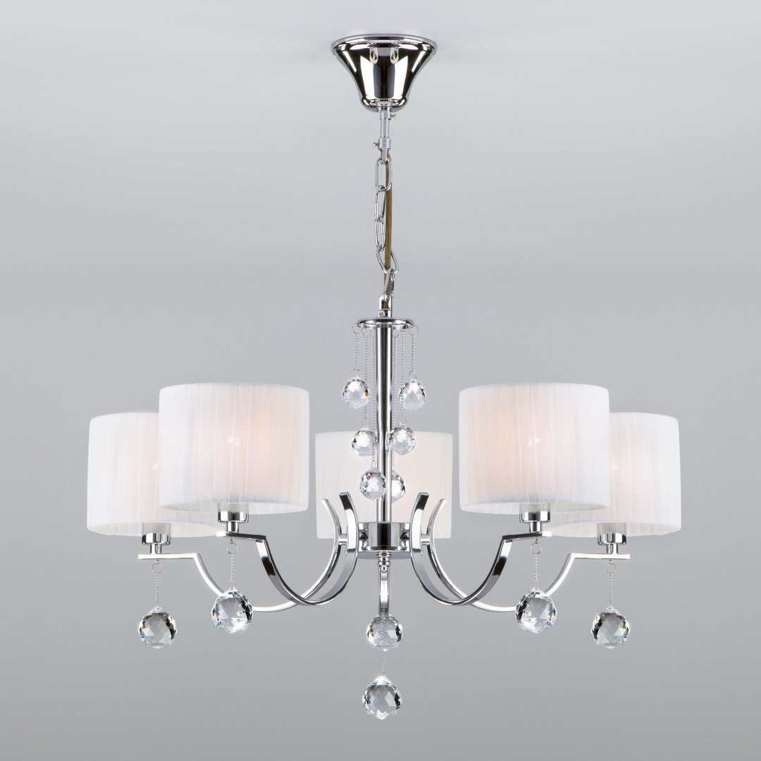 Подвесная люстра на 5 рожков в цвете хром предназначена для создания основного освещения в современных и классических интерьерах, подходит для различных типов помещений: гостиная, спальня и рассчитана на площадь освещения 15 м².