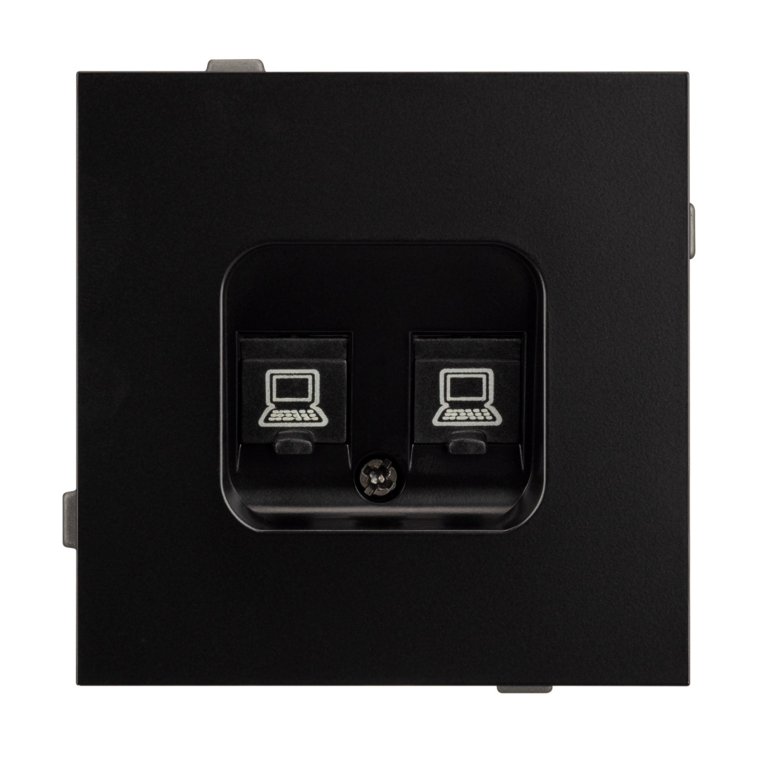 Механизм компьютерной розетки на 2 поста 6-й категории. Цвет - черный. Без фронтальной рамки. Уровень пылевлагозащиты IP20. Розетка устанавливается в стандартный подрозетник круглого сечения диаметром 60мм.