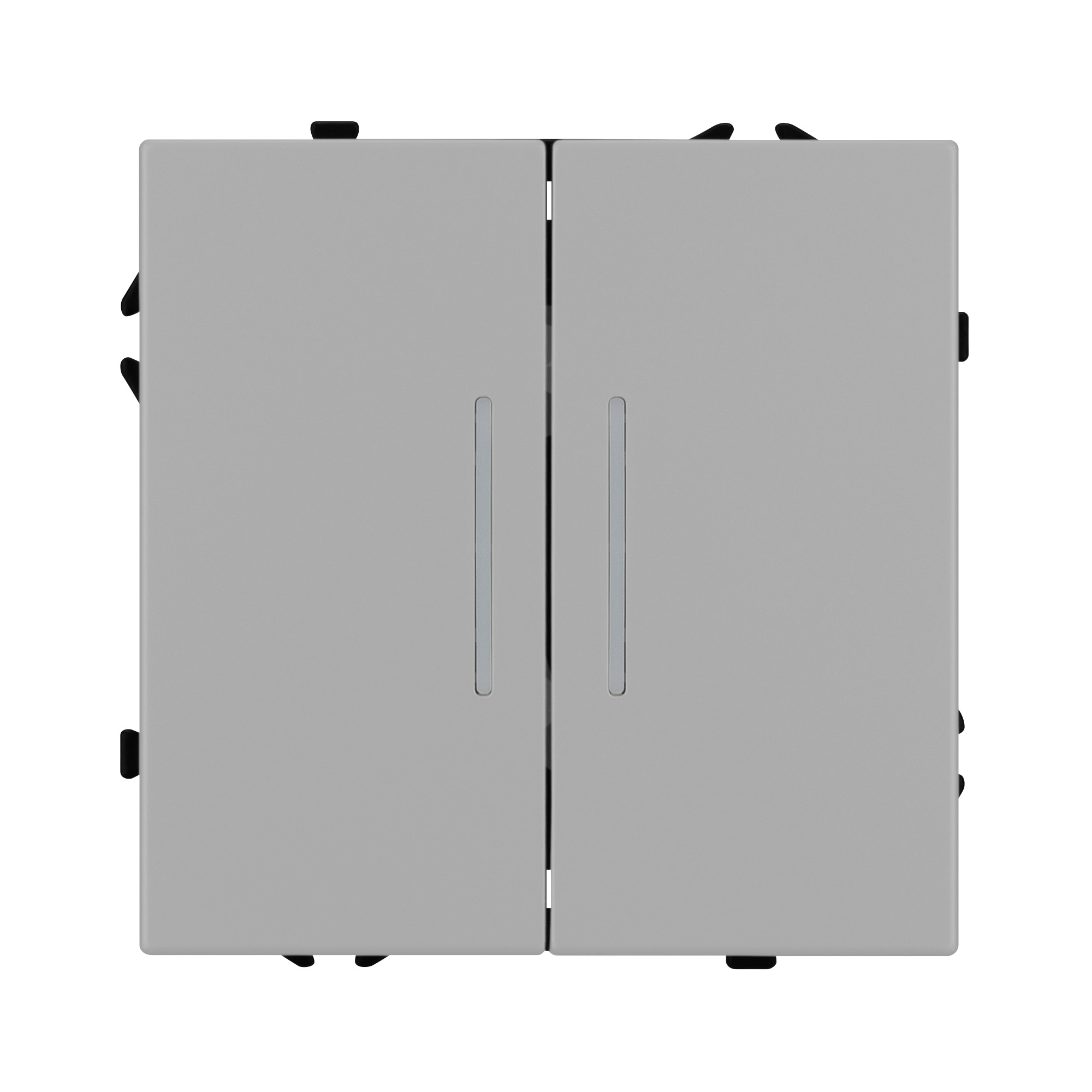 Механизм выключателя света клавишный на 1 пост 2 клавиши (проходной). Цвет - никель, с Soft-Touch поверхностью. Клавиши имеют LED подсветку - cинего свечения. Без фронтальной рамки. Уровень пылевлагозащиты IP20. Выключатель устанавливается в стандартный круглый подрозетник круглого сечения диаметром 60мм.