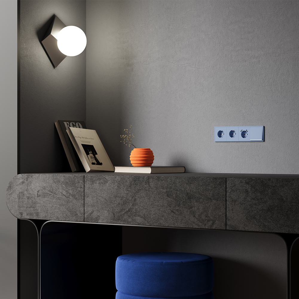 Накладка для розетки с заземлением и защитными шторками, с USB A+A, S70 (деним)