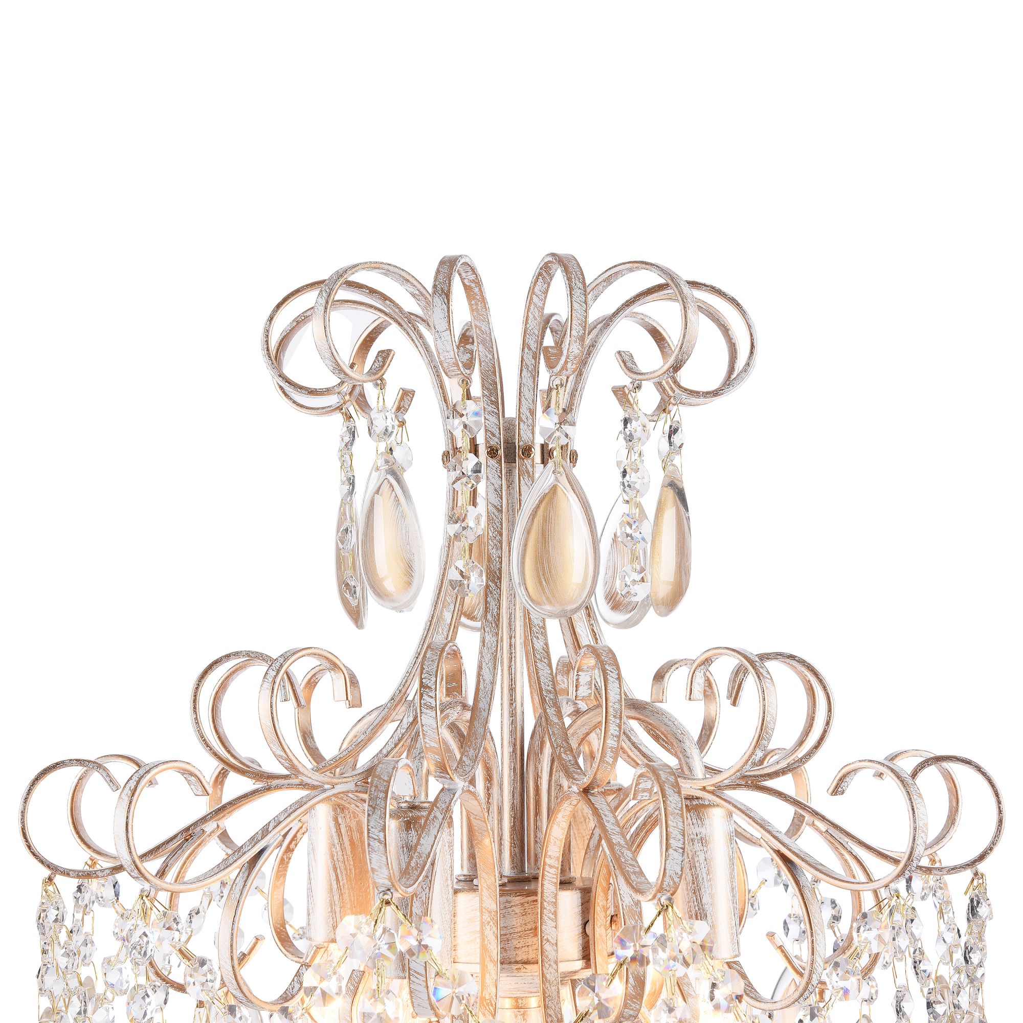 Серия Charbol заслуживает особого внимания благодаря интересному цветовому совмещению отделки арматуры, каплевидным кристаллам из акрила, а также бусинам, которые образуют живописную композицию.